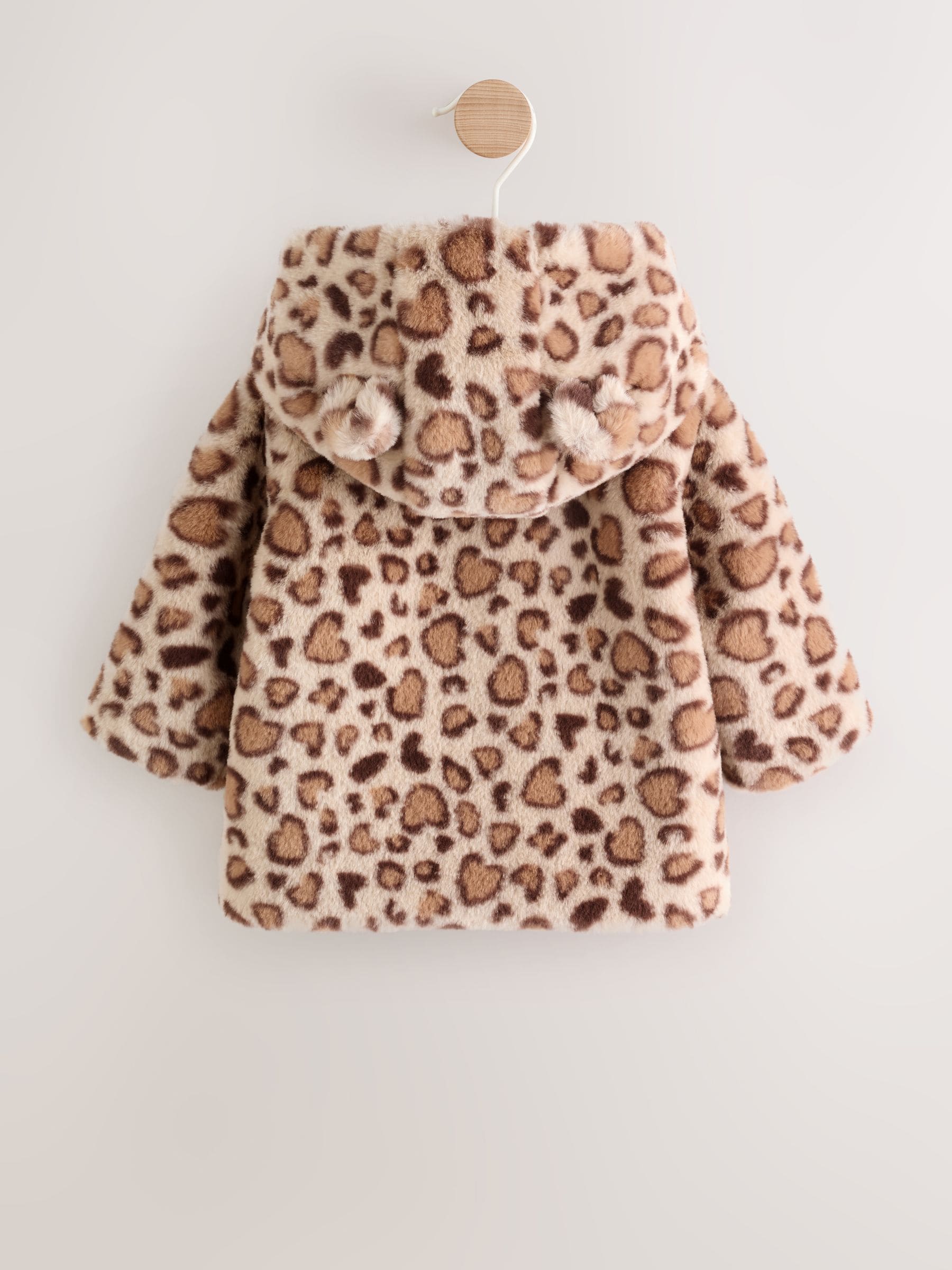 Leopard Print Faux Fur Hooded Baby Jacket (0mths-2yrs)