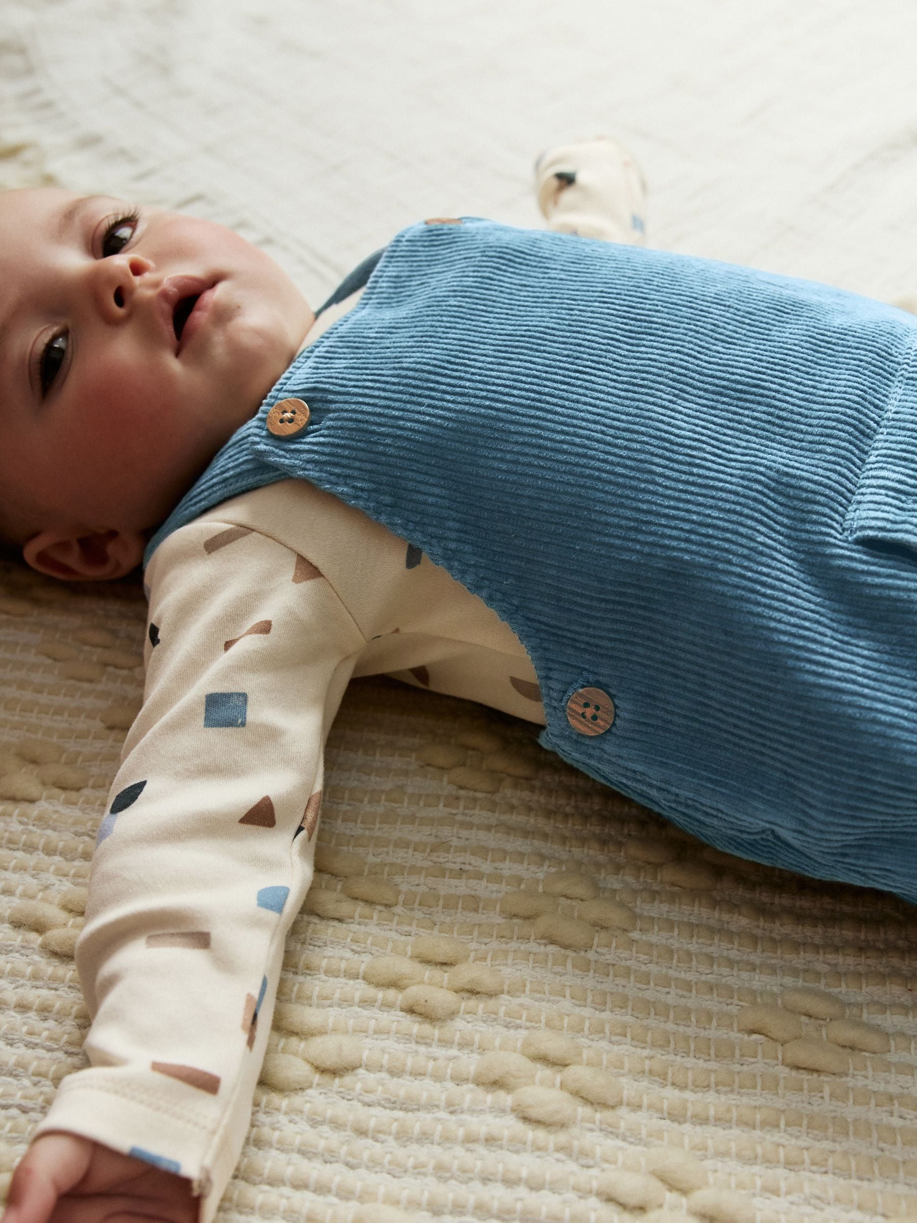 Adorable and comfortable, this two-piece set is perfect for everyday wear. The soft corduroy dungarees feature a small chest pocket and adjustable straps, while the long-sleeve jersey bodysuit has a cute all-over print with nickel-free poppers for easy changes. 2-piece set Corduroy Jersey Nickel-free poppers Adjustable length straps Machine washable. Dungaree Main 100% Cotton. Lining 100% Cotton. Bodysuit 100% Cotton. Country of Origin: Sri Lanka Warning: Keep away from fire and flames.