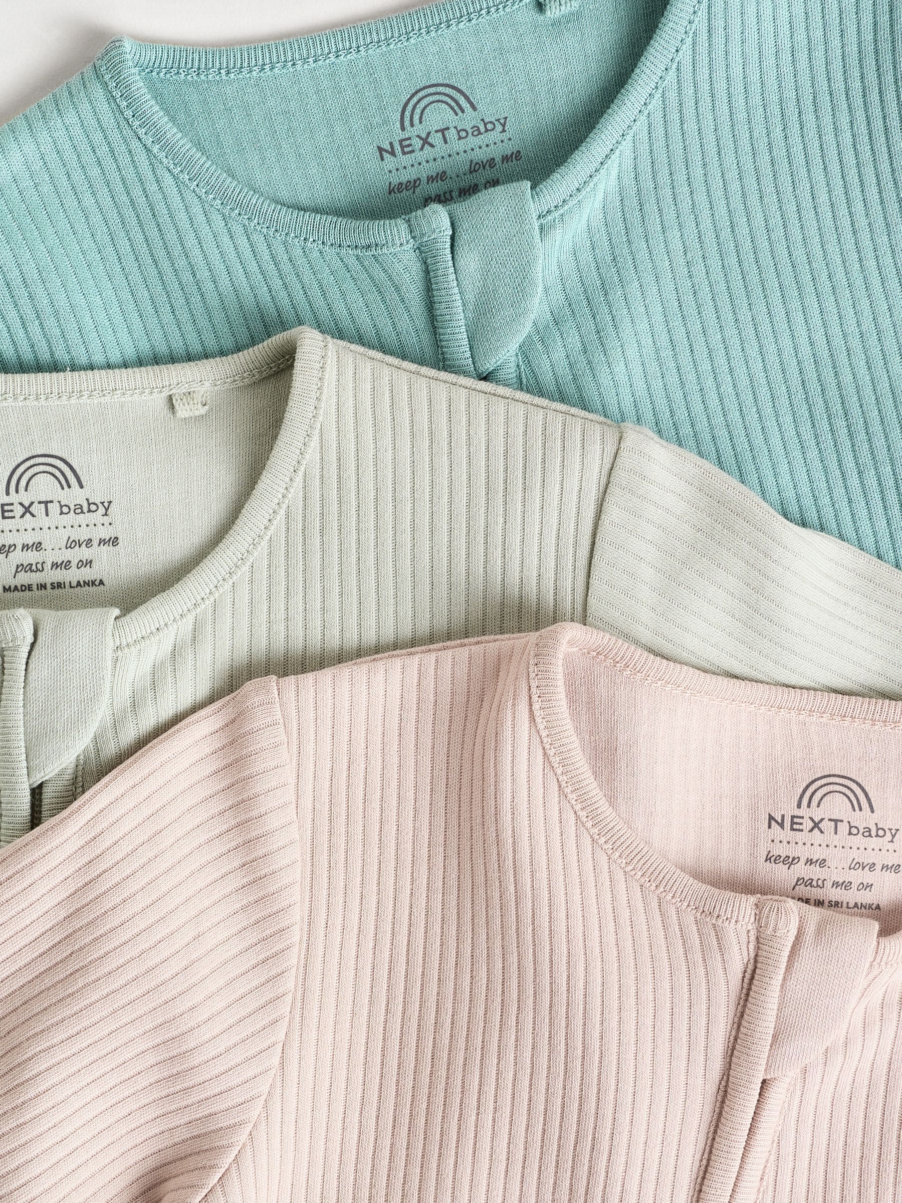 Machine washable. 3 x Sleepsuit 100% Cotton. Country of Origin: Sri Lanka Warning: Keep away from fire and flames.