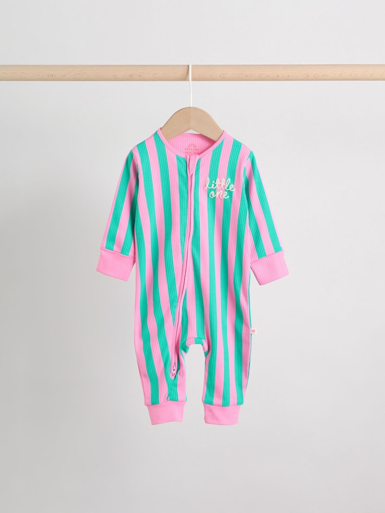 Multi Stripe Two Way Zip Baby Sleepsuits 3 Pack (0mths-3yrs)
