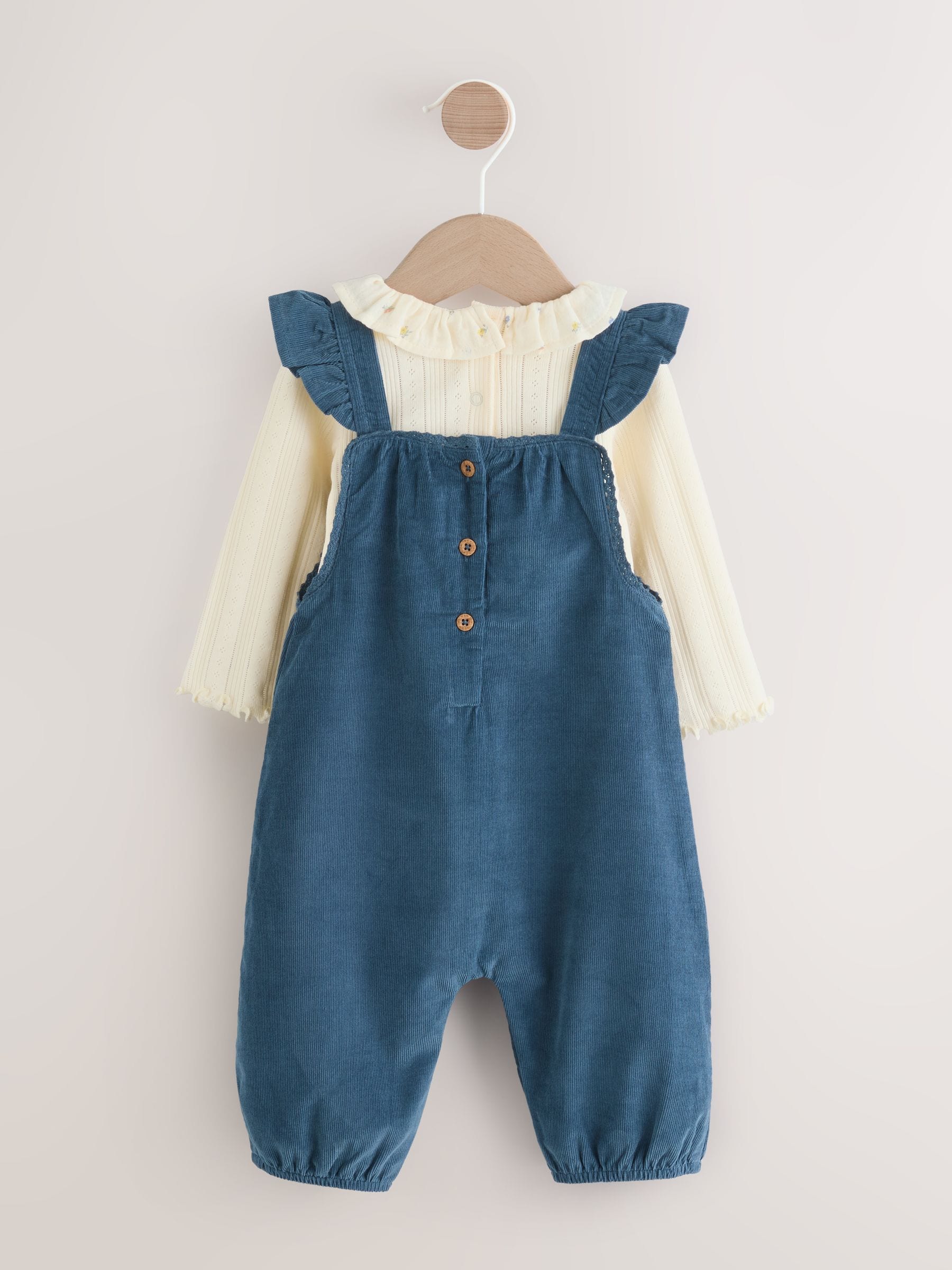 Navy Embroidered Baby Print Long Sleeve Bodysuit and Cord Dungarees Set 2 Piece (0mths-2yrs)