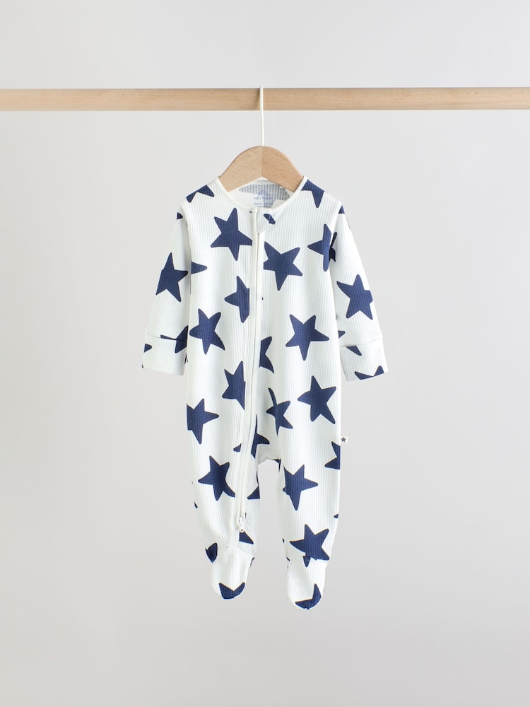 Navy Star Two Way Zip Baby Sleepsuits 3 Pack (0-2yrs)