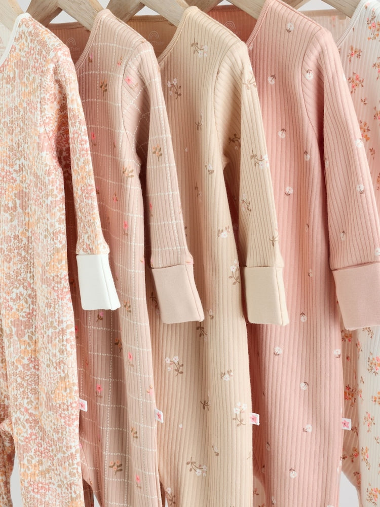 Neutral 5 Pack Two Way Zip Baby Sleepsuits (0mths-3yrs)