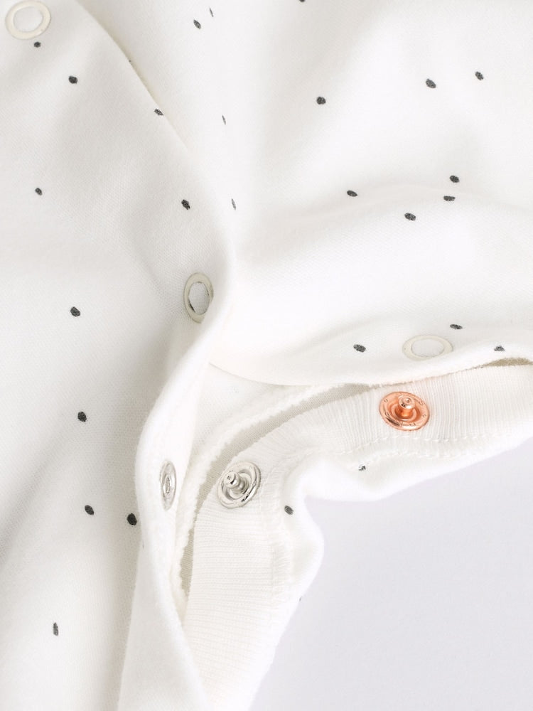 This 5-pack of sleepsuits are great for keeping them well-stocked in cosy pyjamas, made from a super soft cotton fabric in a selection of rabbit and bear designs. A popper fastening keeps dressing easy, with turn-back scratch mitts up to 3-6 months and inner lined feet.