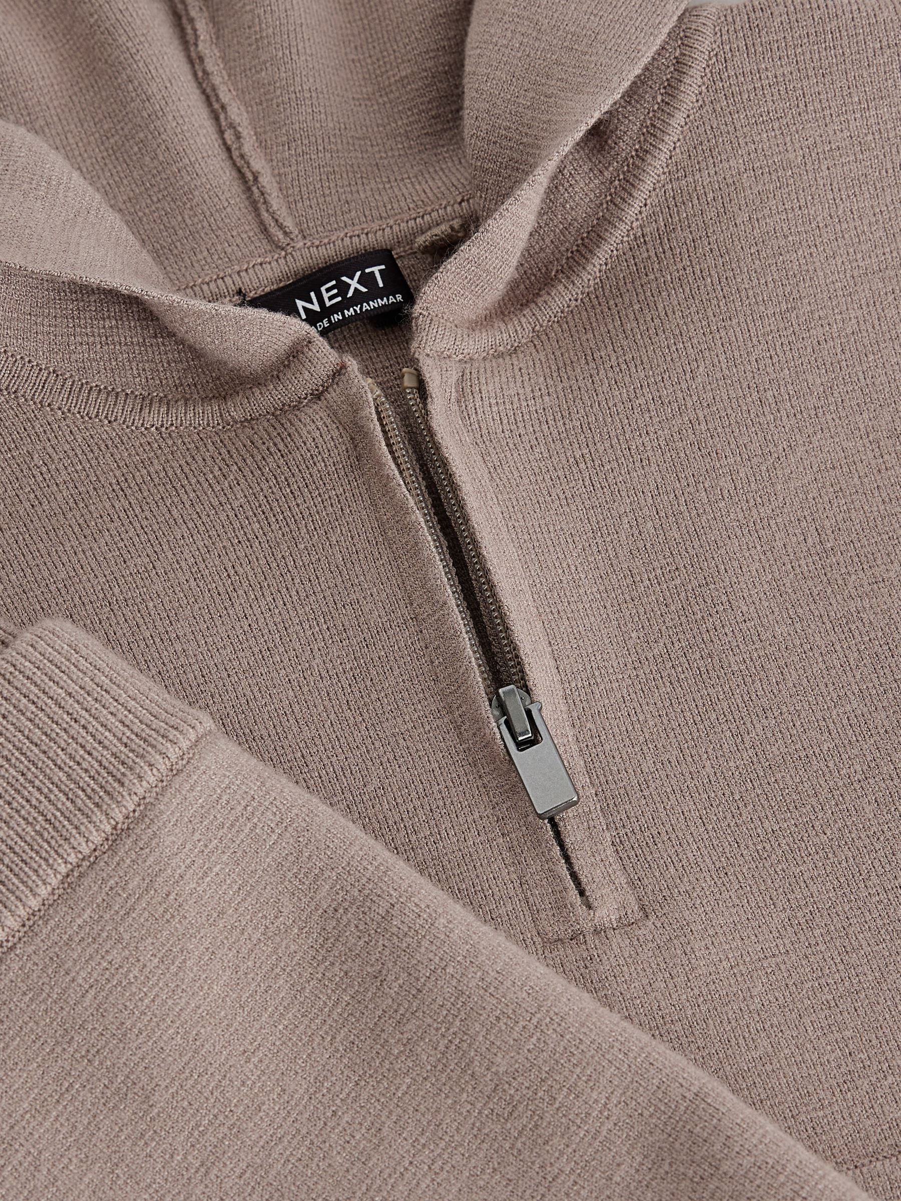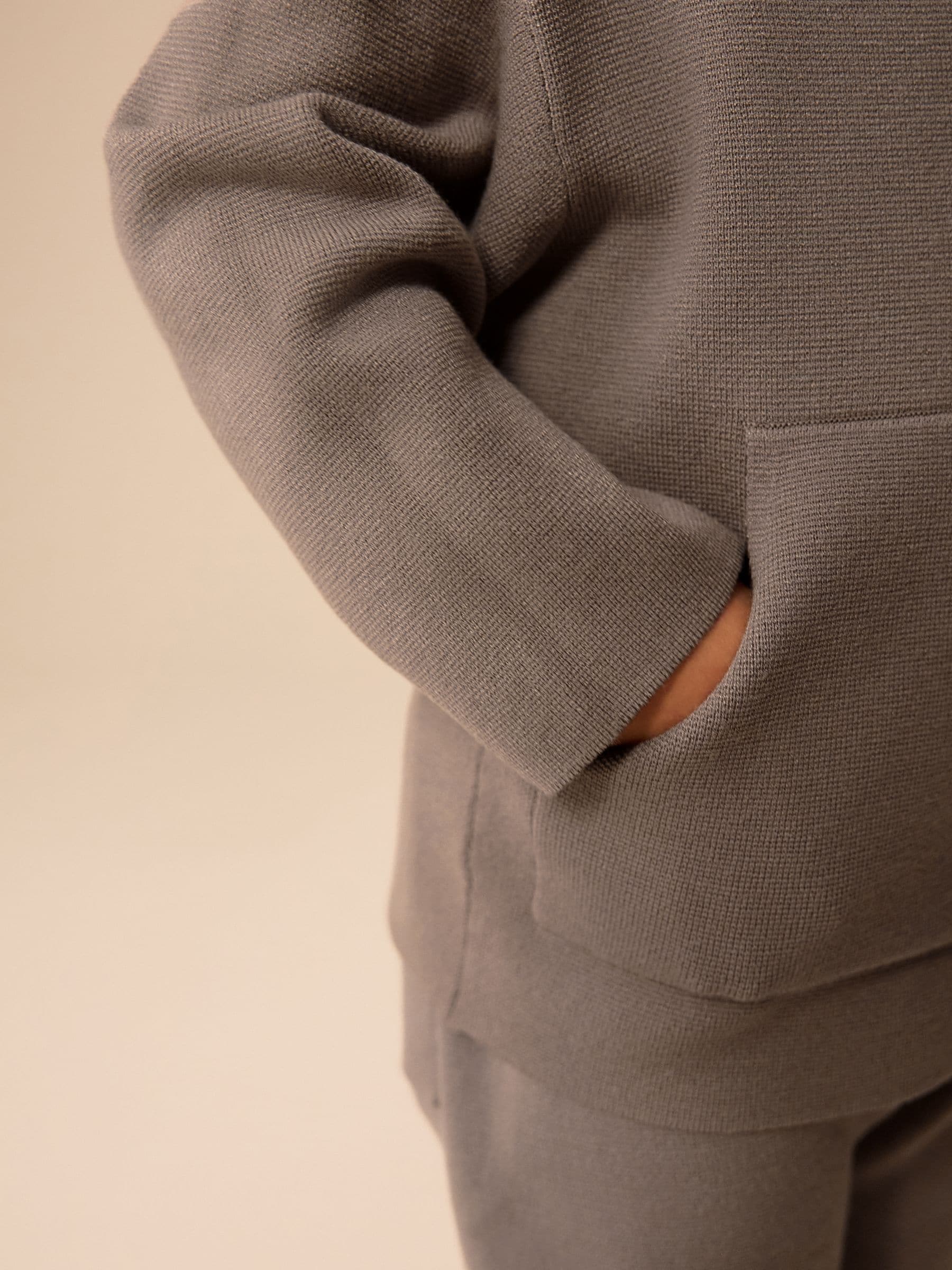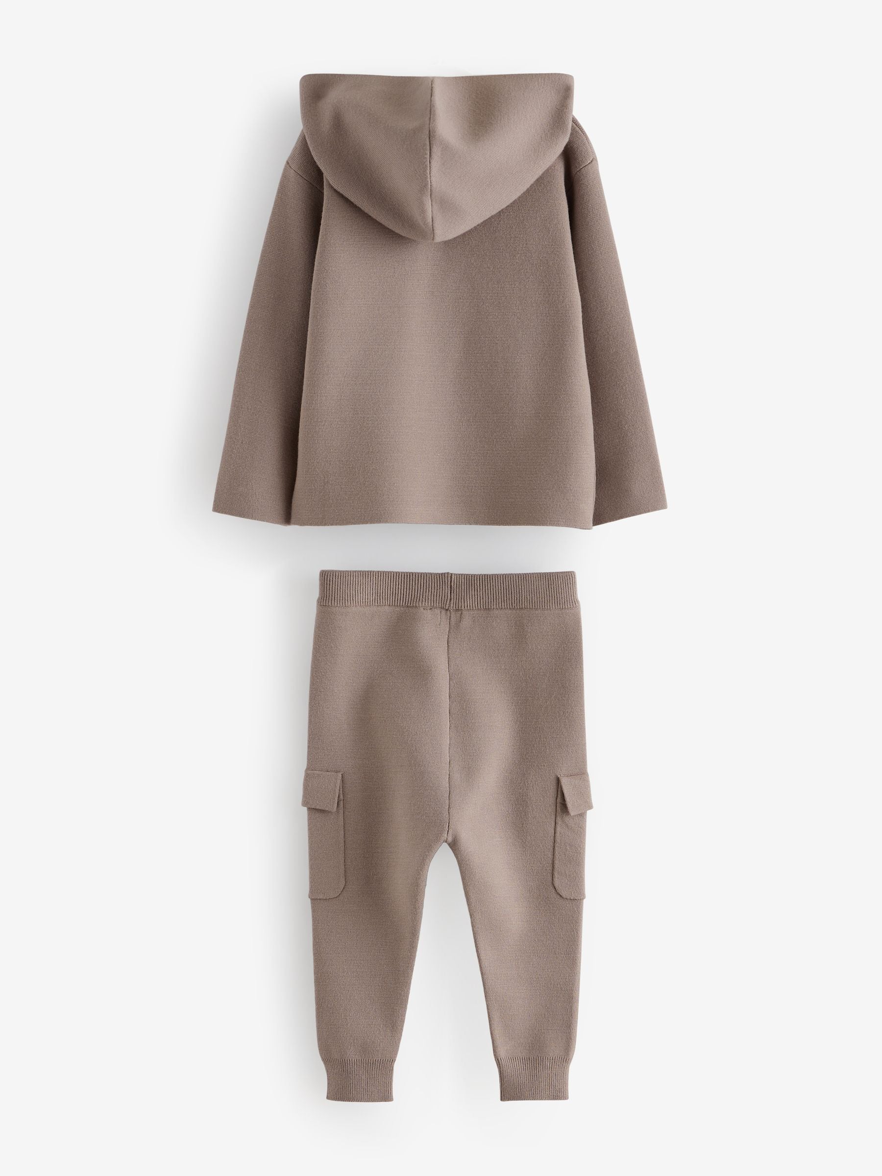 Neutral Knitted Zip Neck Utility Hoodie and Joggers Set (3mths-7yrs)