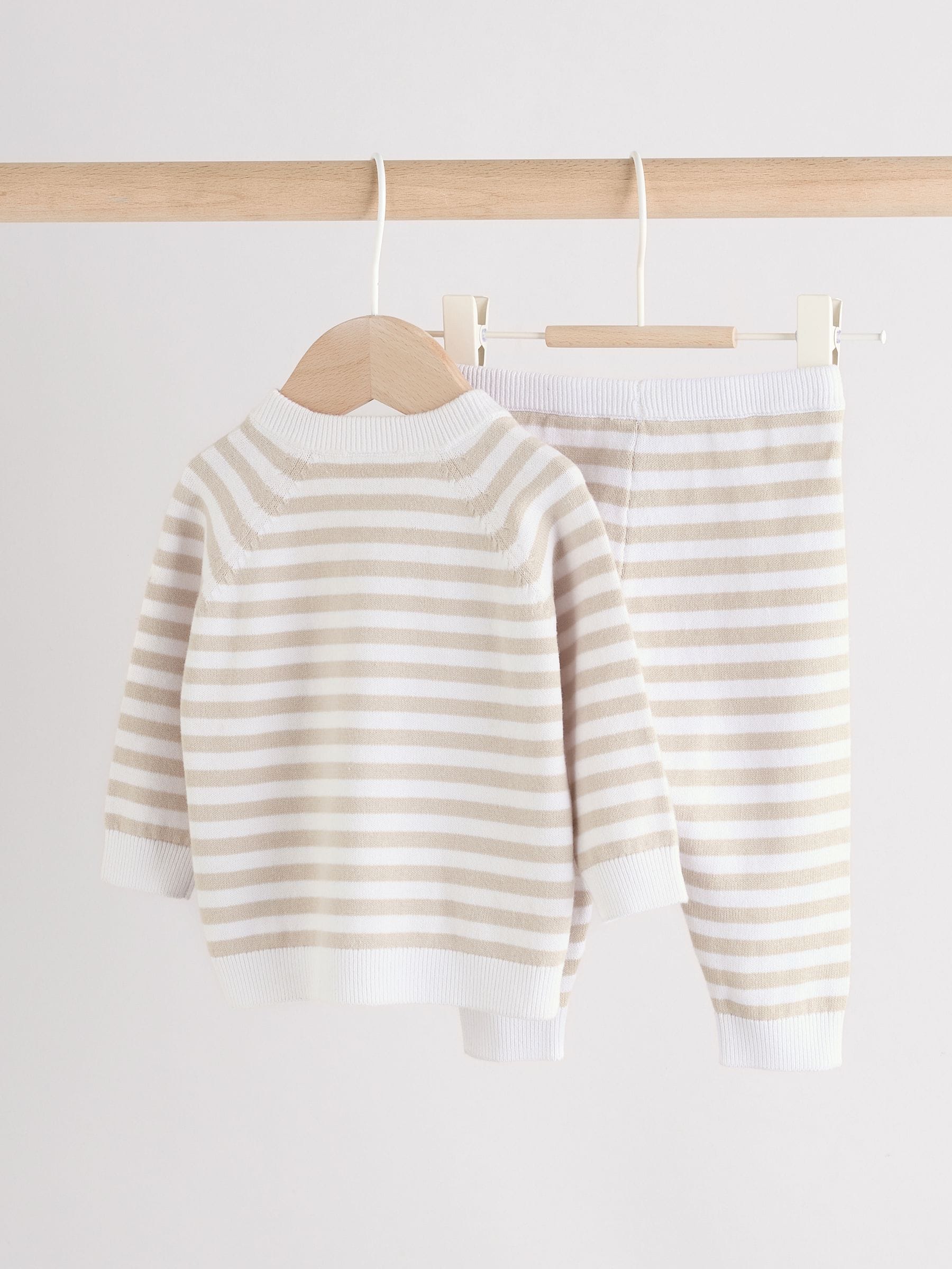 Neutral Stripe Knitted Top and Leggings Baby Set (0mths-2yrs)