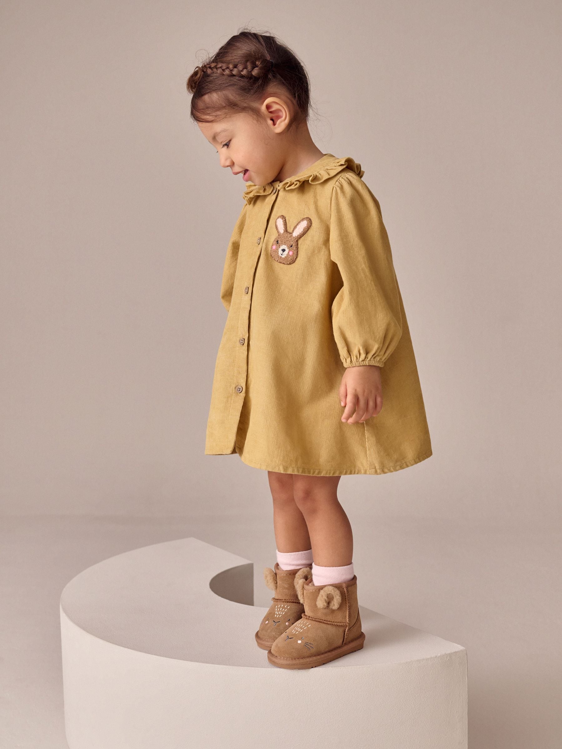 Ochre Yellow Bunny Cord Long Sleeve Dress (3mths-8yrs)