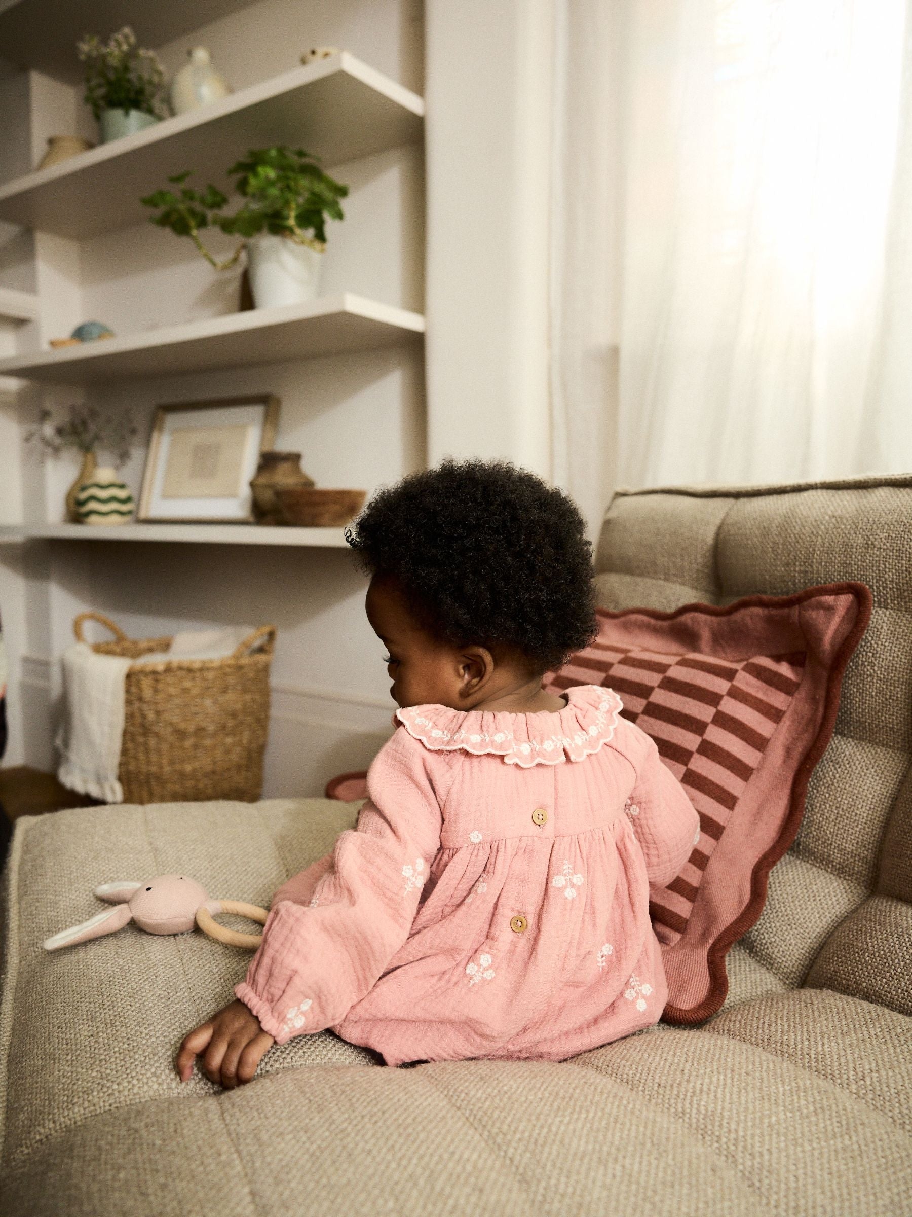 Pink Baby Embroidered Woven Long Sleeve Dress (0-18mths)