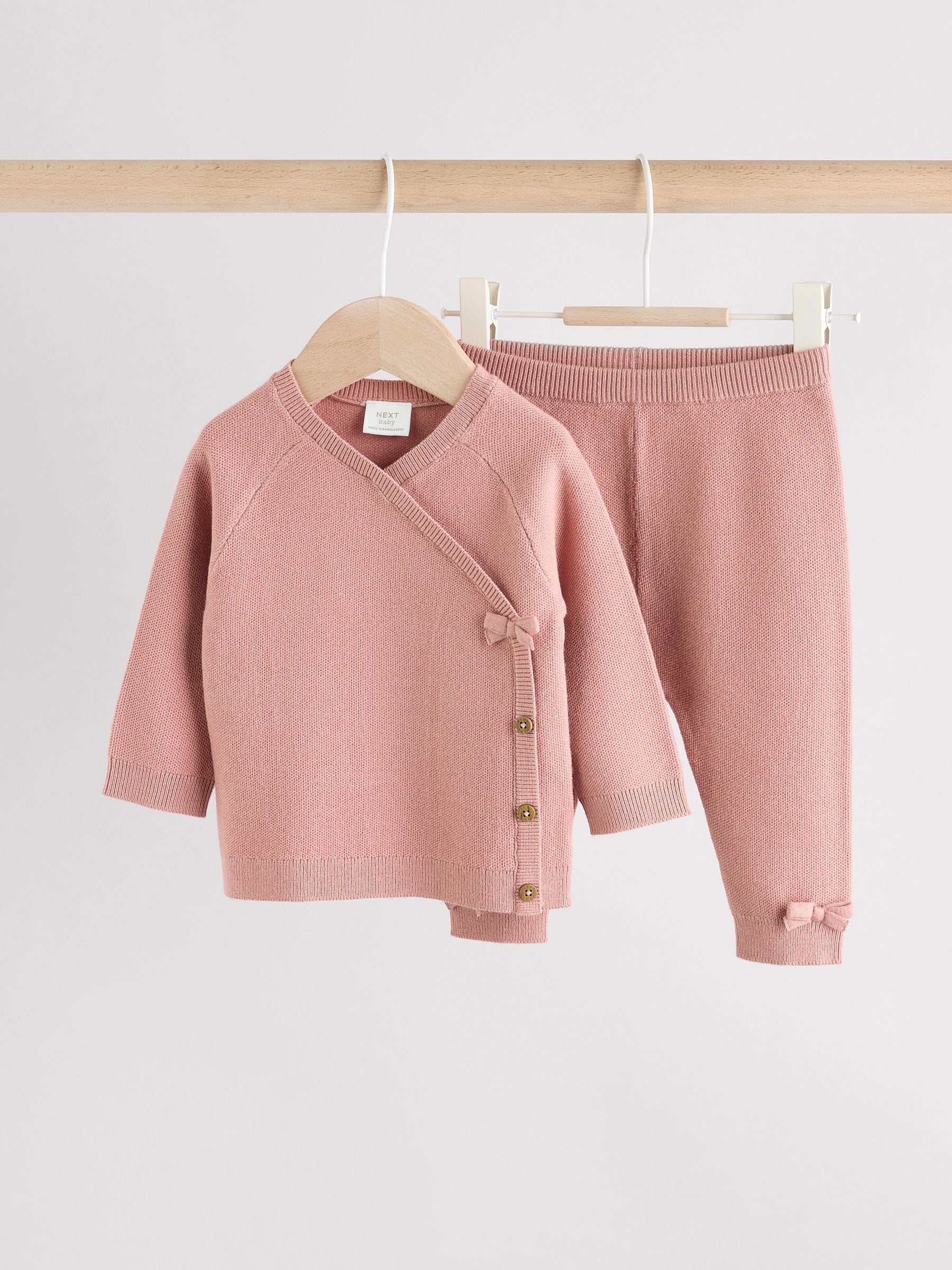 Pink Baby Knitted Wrap Jumper and Leggings 2 Piece Set (0mths-2yrs)