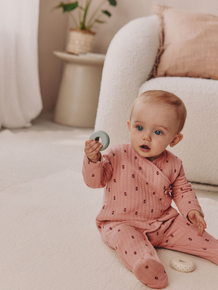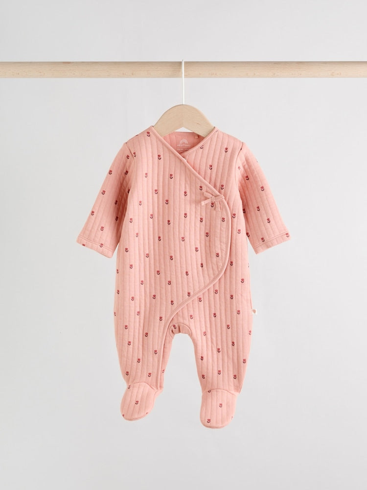 Pink/Cream Quilted Baby Sleepsuits 2 Pack