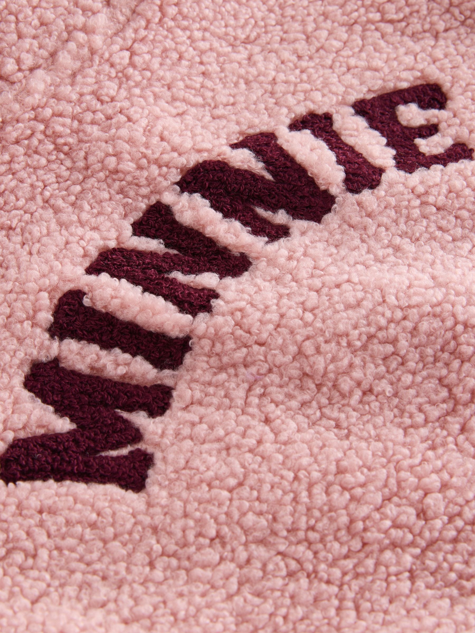 This pink preppy-look fleece is perfect for your little Disney fan, made from a war borg fabric with a Minnie Mouse chest and back boucle design, a zip-up neck with a tall collar and side pockets. Regular fit Borg fleece fabric Zip-up neck Boucle Minnie Mouse chest and back graphics Main 100% Recycled polyester. Trim 100% Polyester. Country of Origin: China