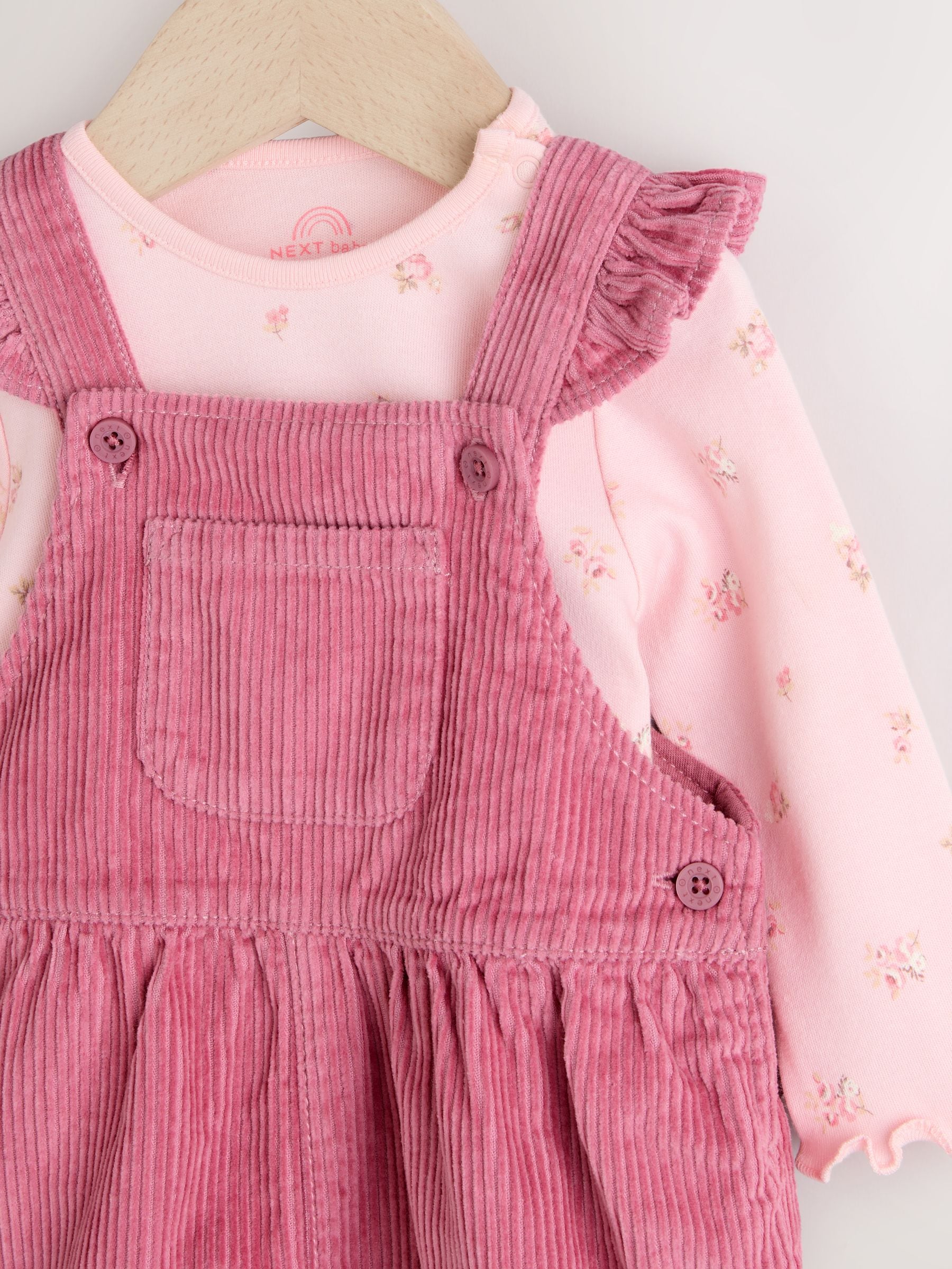 Pink Ditsy Baby Print Long Sleeve Bodysuit and Cord Dungarees Set 2 Piece (0mths-2yrs)