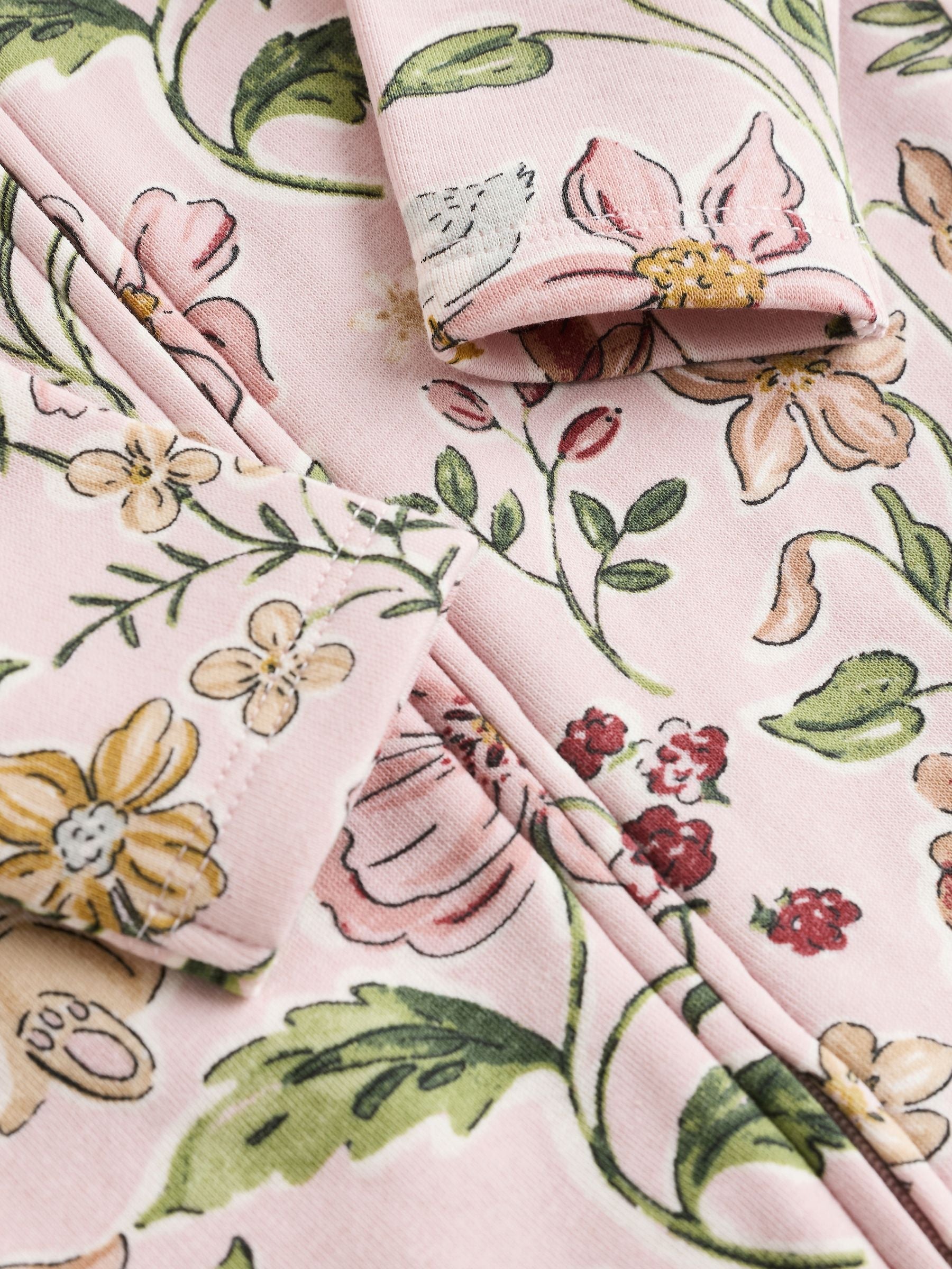 This fleece-lined baby sleepsuit is a practical and comfortable choice for peaceful sleep. The two-way zip front fastening ensures easy dressing and nappy changes, combining warmth and convenience for little ones. Fleece lined for warmth Two-way zip front fastening All-over print design Long sleeves Machine washable. 61% Recycled polyester, 35% Cotton, 4% Elastane. Country of Origin: Vietnam Warning: Keep away from fire and flames.
