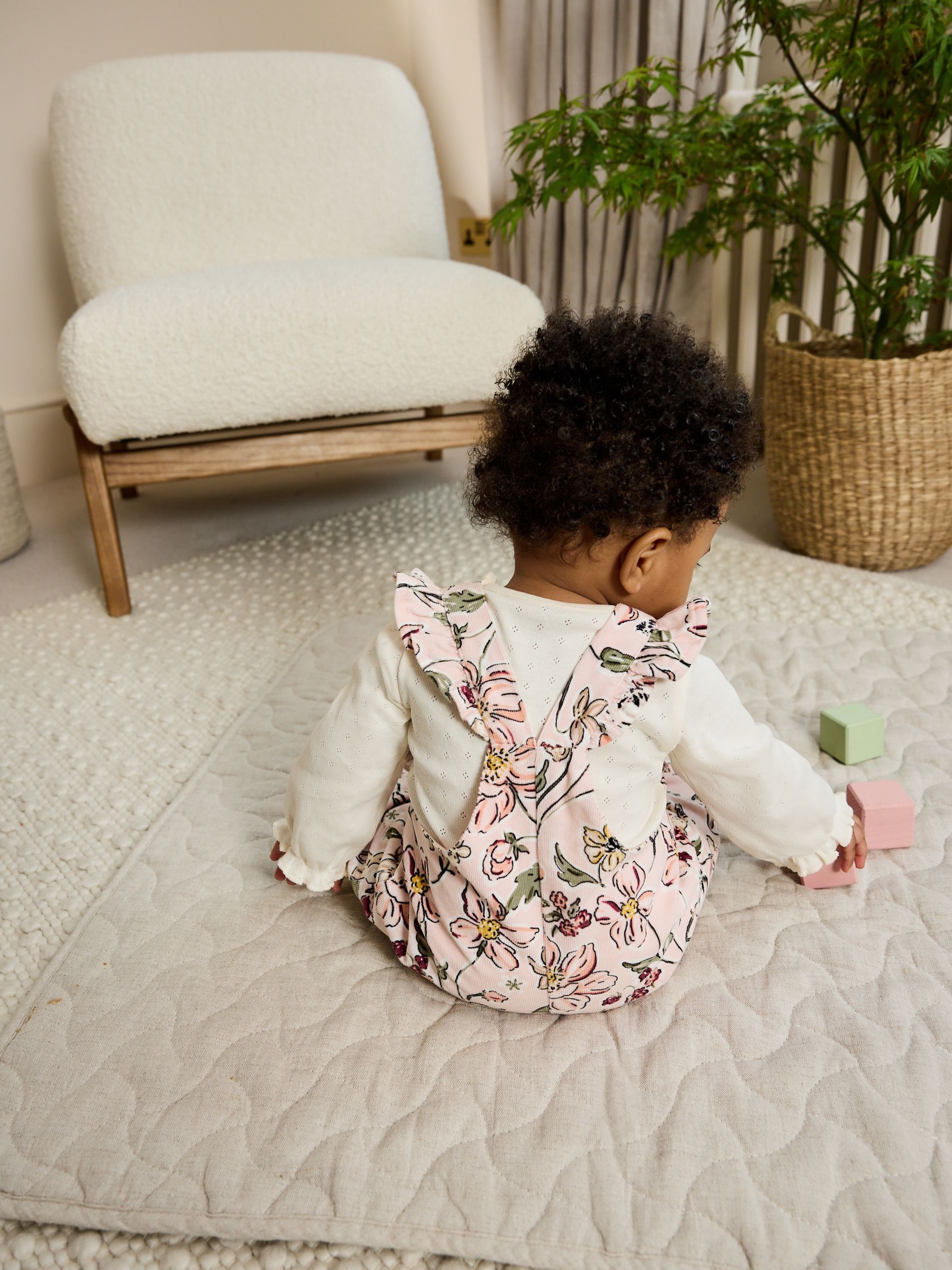 Pink Floral Baby Print Long Sleeve Bodysuit and Cord Dungarees Set 2 Piece (0mths-2yrs)