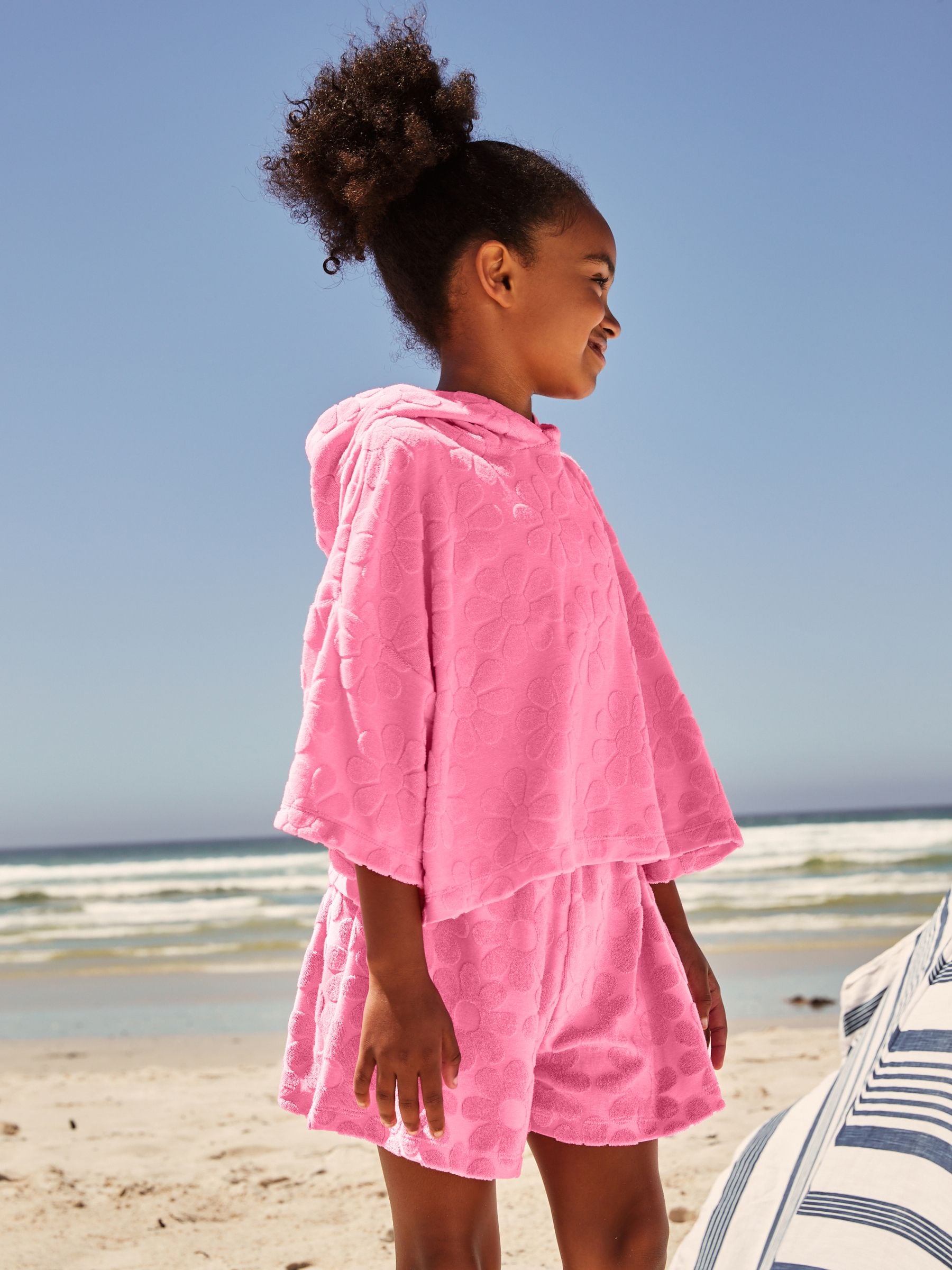 Pink Flower Towelling Beach Co-Ord Hoodie And Shorts Set (3-16yrs)