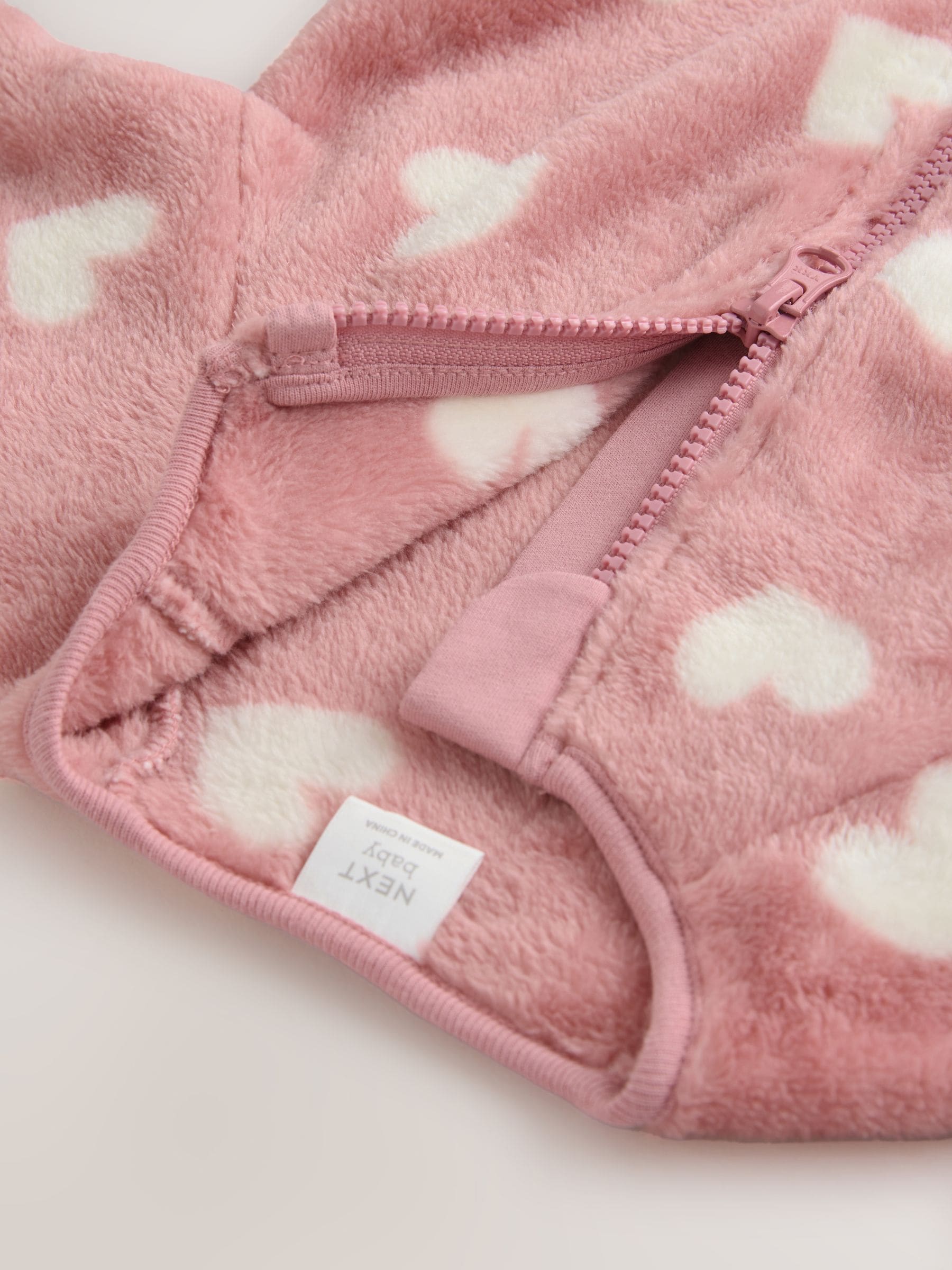 Pink Heart Print Baby Fleece Sleepsuit