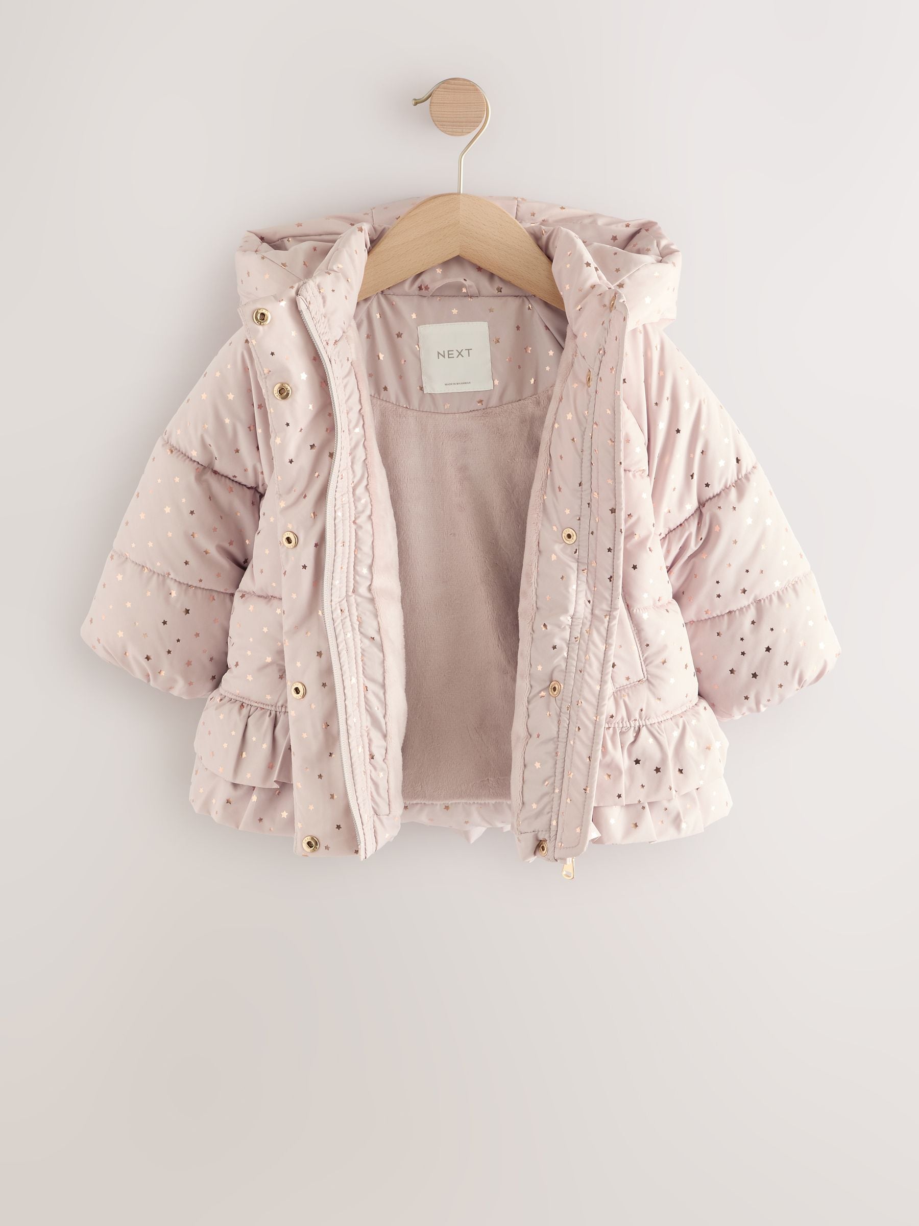 Pink Shower Resistant Padded Coat With Frill Hem (3mths-7yrs)