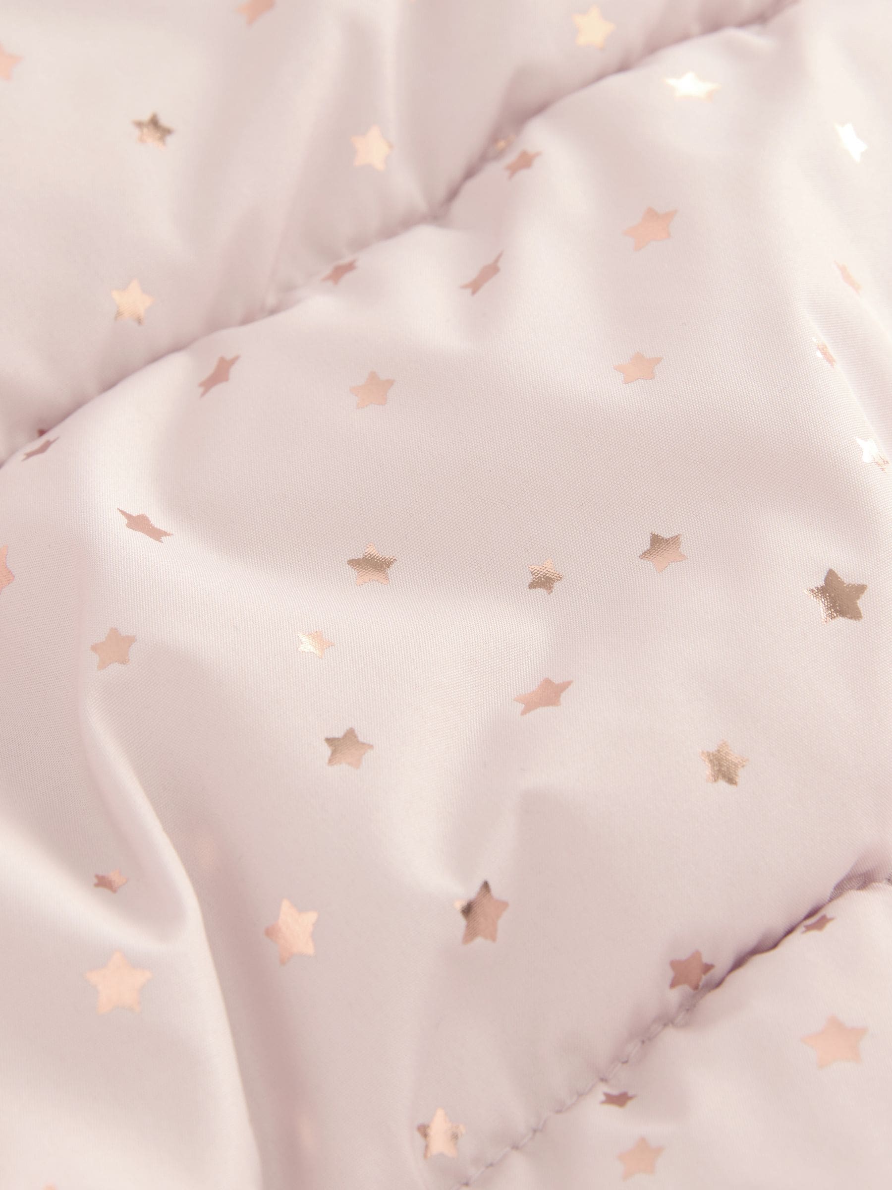 A magical choice for her next adventure, this padded coat is both fun and functional. The shower resistant outer and faux fur lining keep her cosy and dry, while the unique foil print and charming skirted hem add a playful, stylish touch. Shower resistant Foil print Skirted hem Faux fur lining Machine washable. Main 100% Recycled polyester. Lining 100% Recycled polyester. Wadding 100% Recycled polyester. Country of Origin: Myanmar