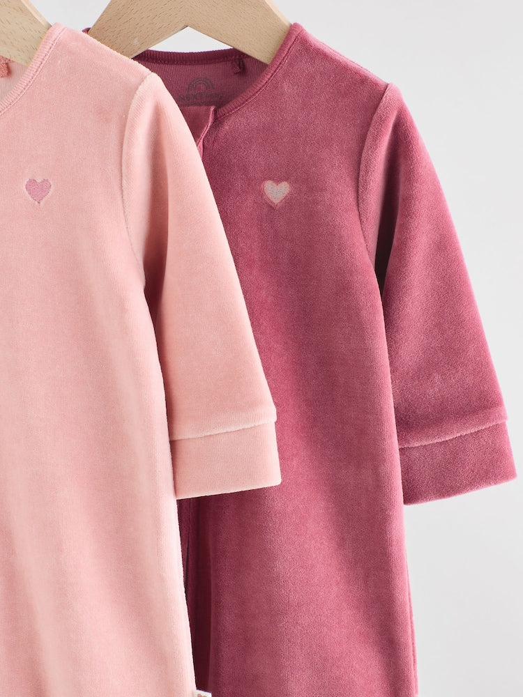Pink Velour Baby Sleepsuits 2 Pack (0mths-2yrs)