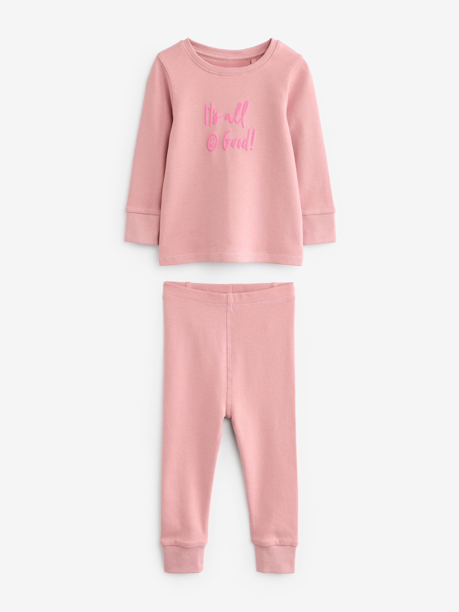 Stock up on their sleepwear essentials and add some fun to their Pink/Yellow Slogan colour pyjama rotation with this handy 3-pack set. Made from pure cotton, each 2-piece ensures a comfortable sleep across long-sleeved tops and matching bottoms, finished with an elasticated waistband for the perfect fit. 3-pack set 100% Cotton Long sleeve tops Matching bottoms Elasticated waistband Machine washable. 3 x Pyjama Top and 3 x Pyjama Bottom 100% Cotton. Country of Origin: Bangladesh Warning: Keep away from fire and flames.
