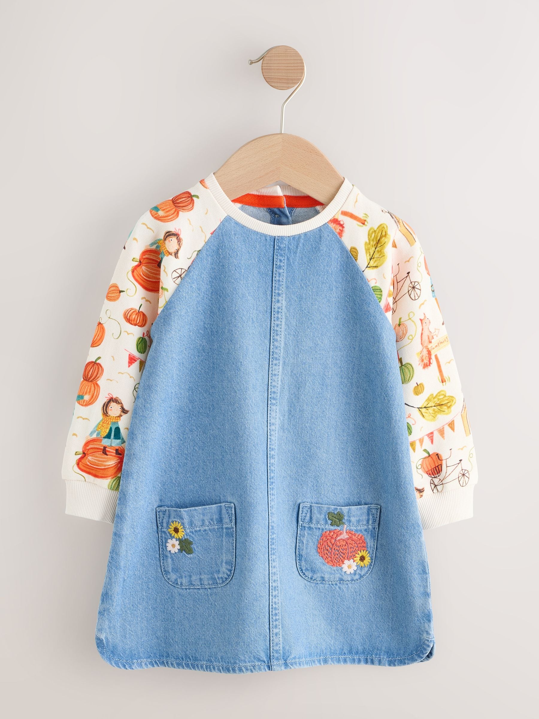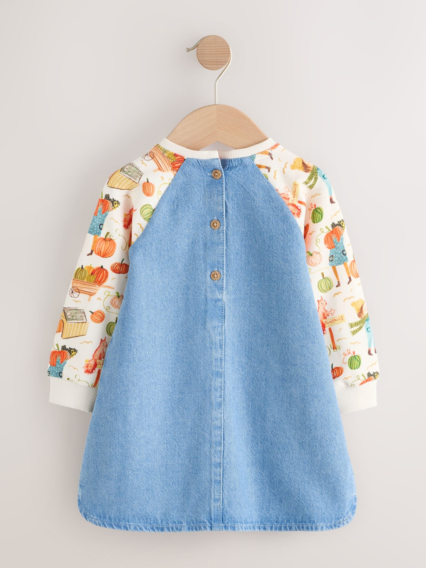 Pumpkin Print Raglan Denim Dress (3mths-8yrs)