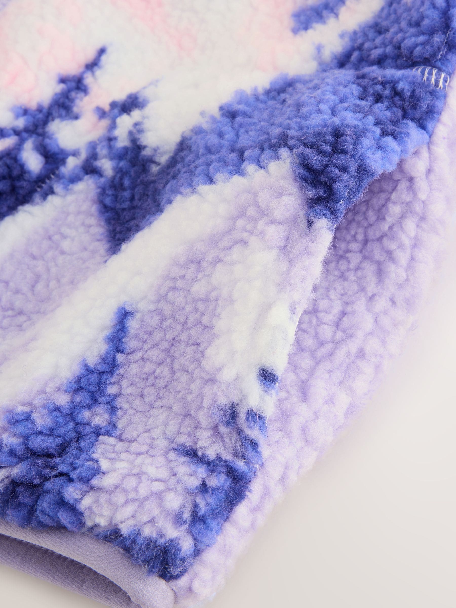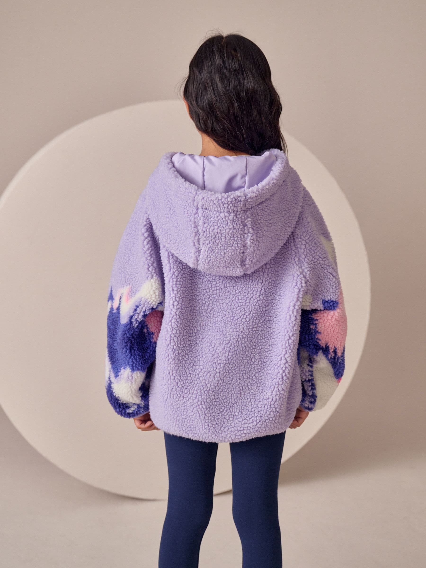 Purple/Pink Mountain Scene Hooded Zip Borg Fleece Jacket (3-16yrs)