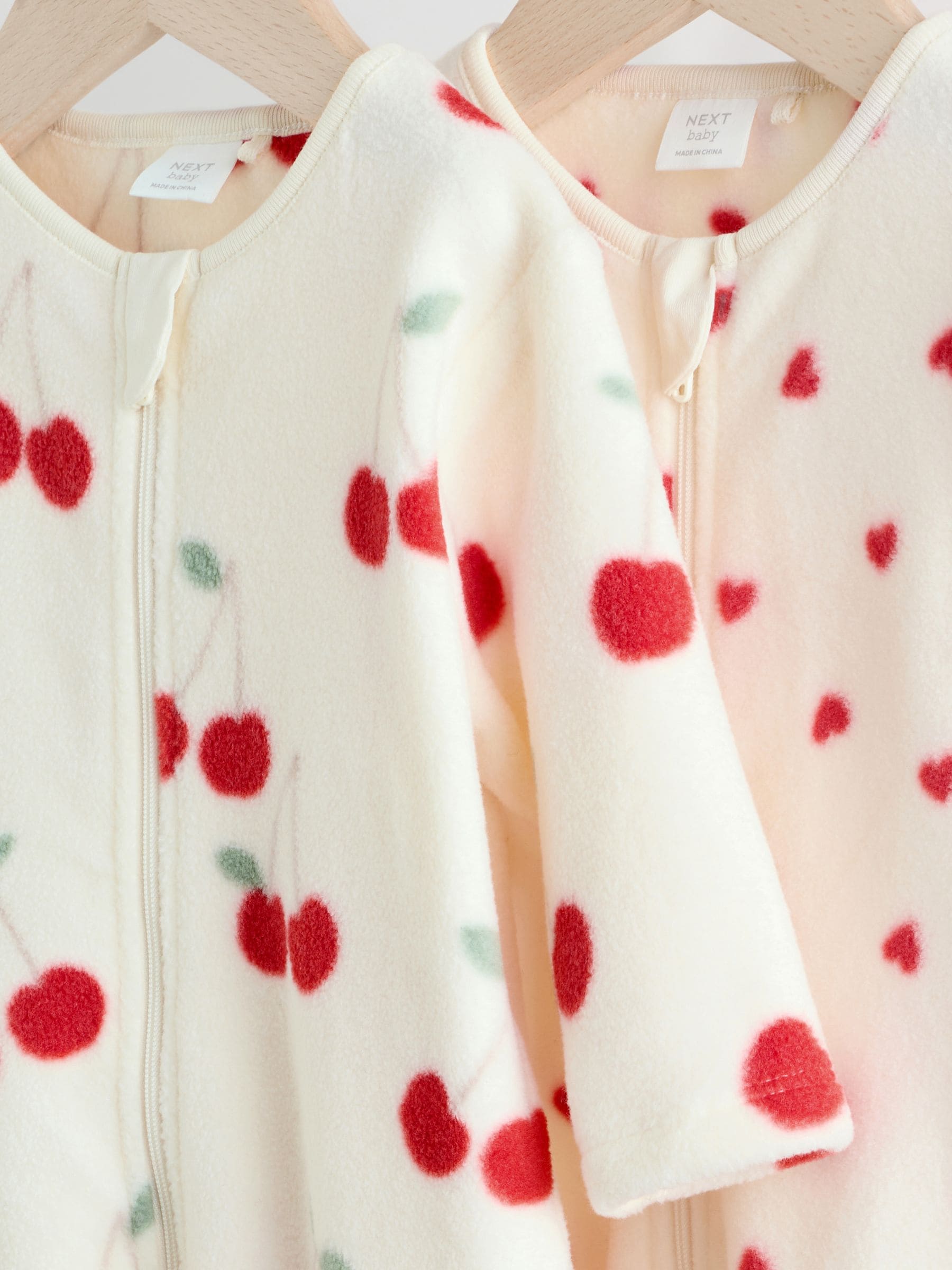 Red 2 Pack Micro Fleece Two Way Zip Baby Sleepsuits