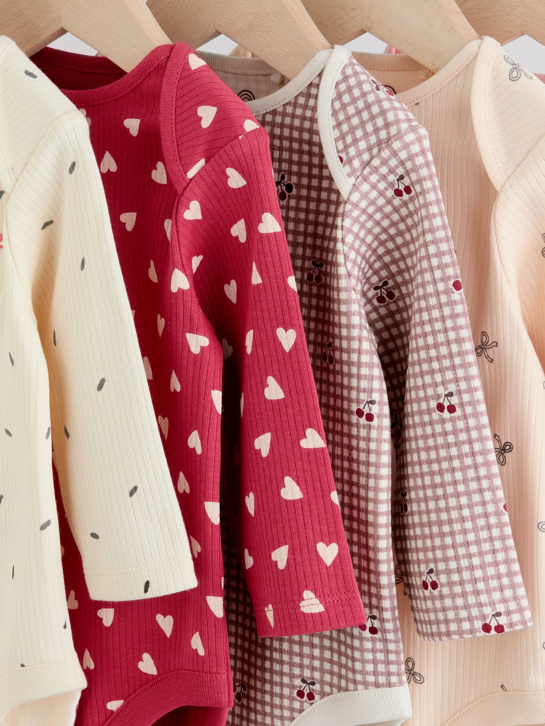Red Baby Long Sleeve Bodysuits 5 Pack