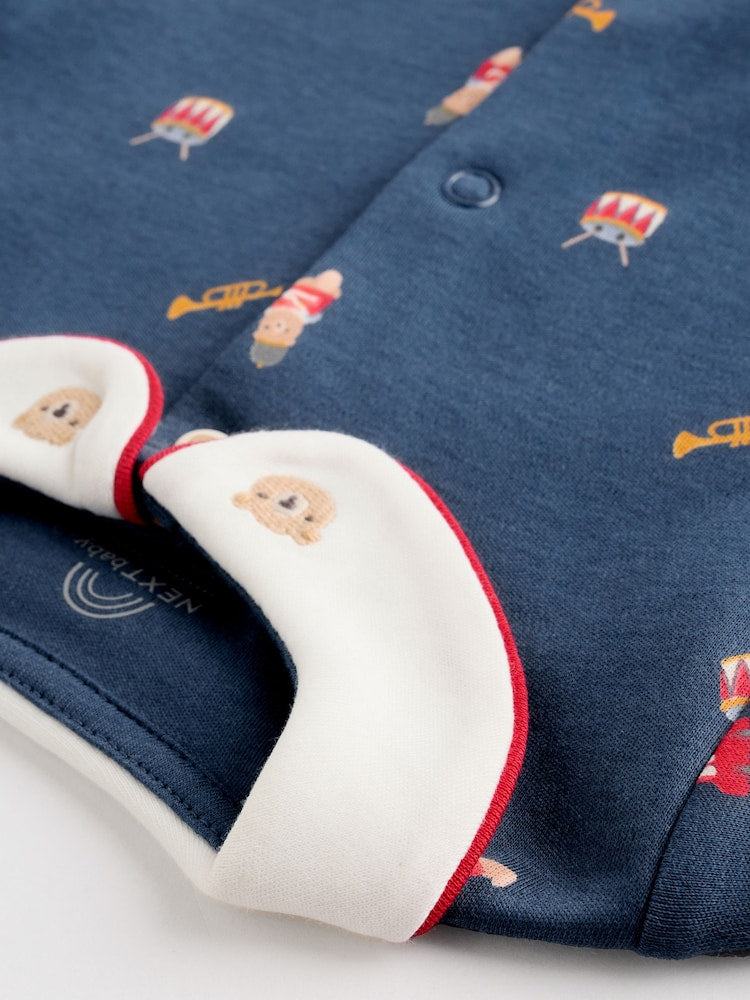 This super-soft three-pack of sleepsuits features charming prints and a bold stripe design. Each one has turn-back scratch mitts and anti-slip soles to keep them cosy and safe as they play and snooze.