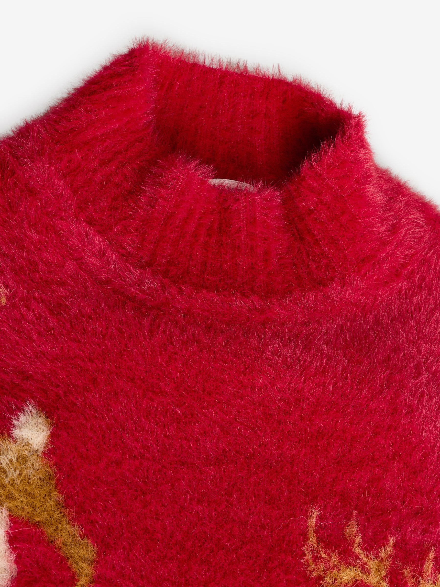 Red Fluffy Reindeer Jumper (3-16yrs) (3-16yrs)