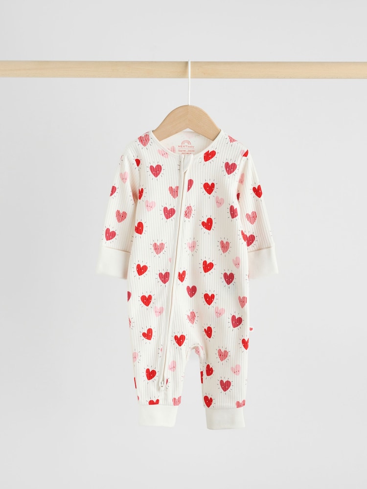 Red Heart Two Way Zip Baby Sleepsuits 3 Pack (0mths-3yrs)