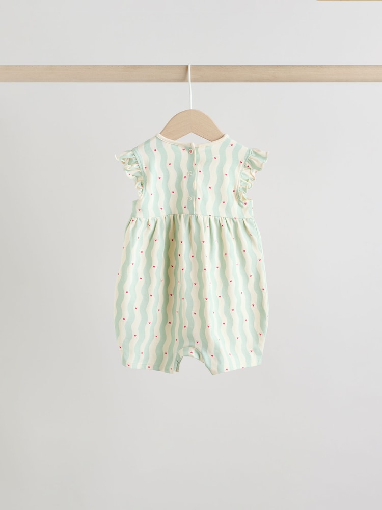 This sweet Red Strawberry Printed Rompers 3 Pack is a charming collection of warm-weather outfits. The rompers feature a fun strawberry printed design and playful frill shoulder detail. The designs include a wadded character detail on one of the rompers, and all feature a convenient popper back neck and popper leg opening for easy changing.