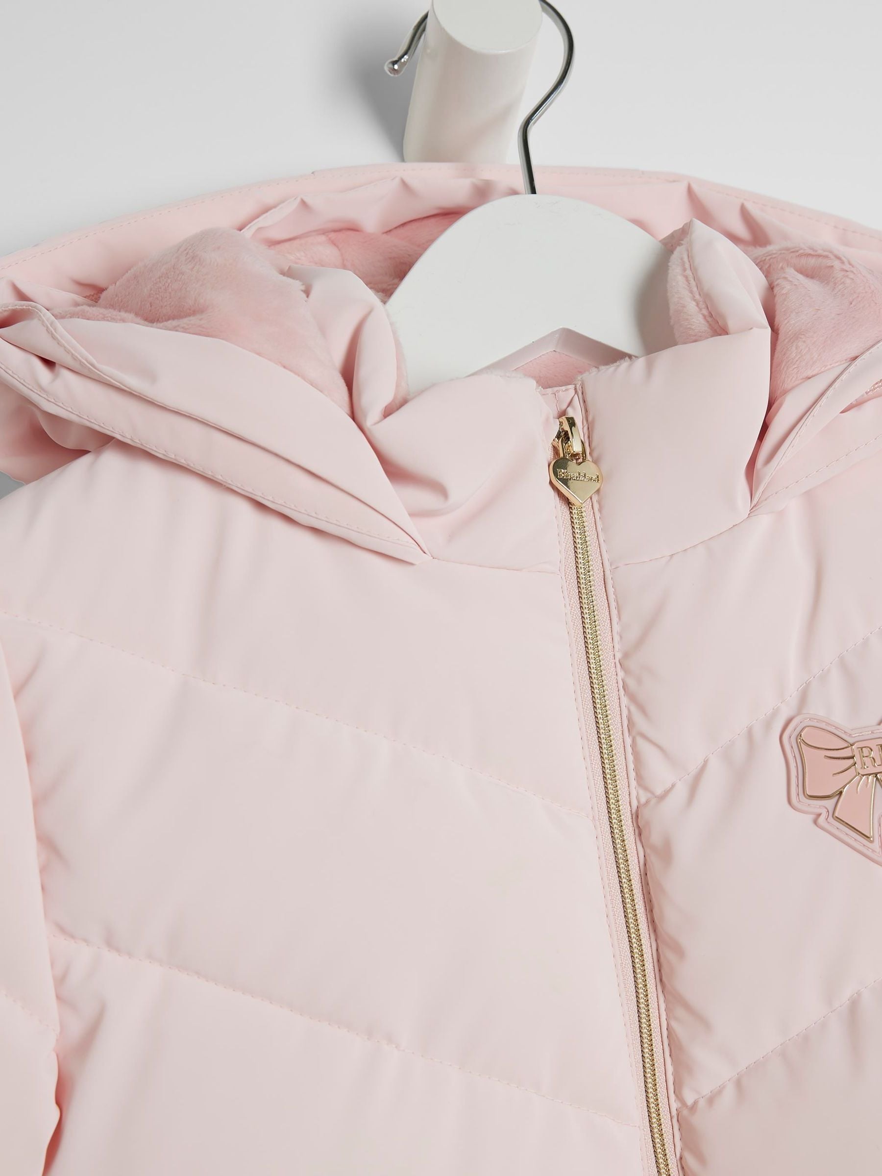 Fleece lined Fleece-lined pockets Removable faux fur Storm cuffs Pink Hooded Bow detail Buttoned pressed pockets Zipped fastening Long sleeves Midi length Heavyweight 100% Polyester. Country of Origin: China
