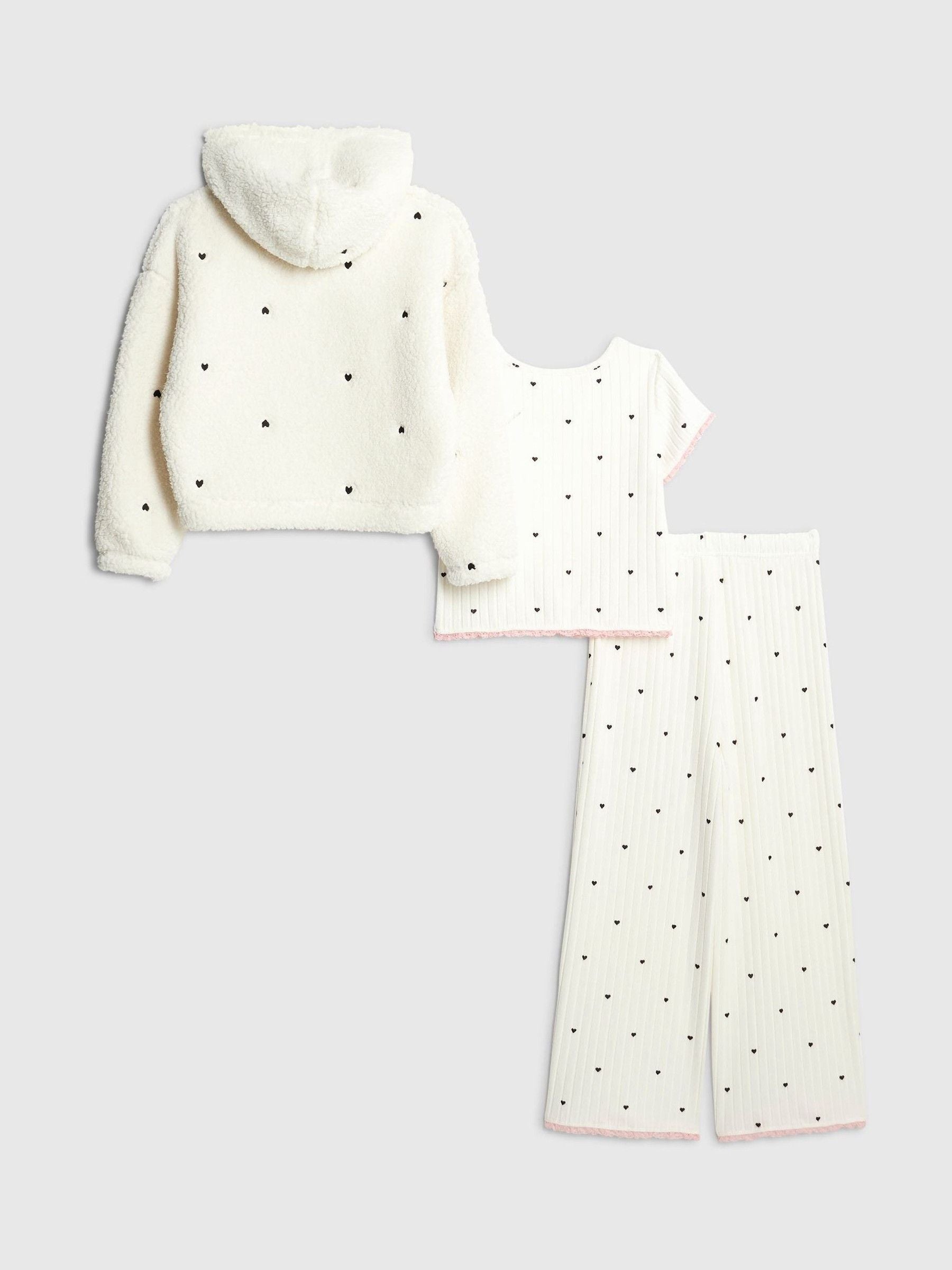 River Island White Girls 3 Piece Heart Print Hoodie Pyjamas Set