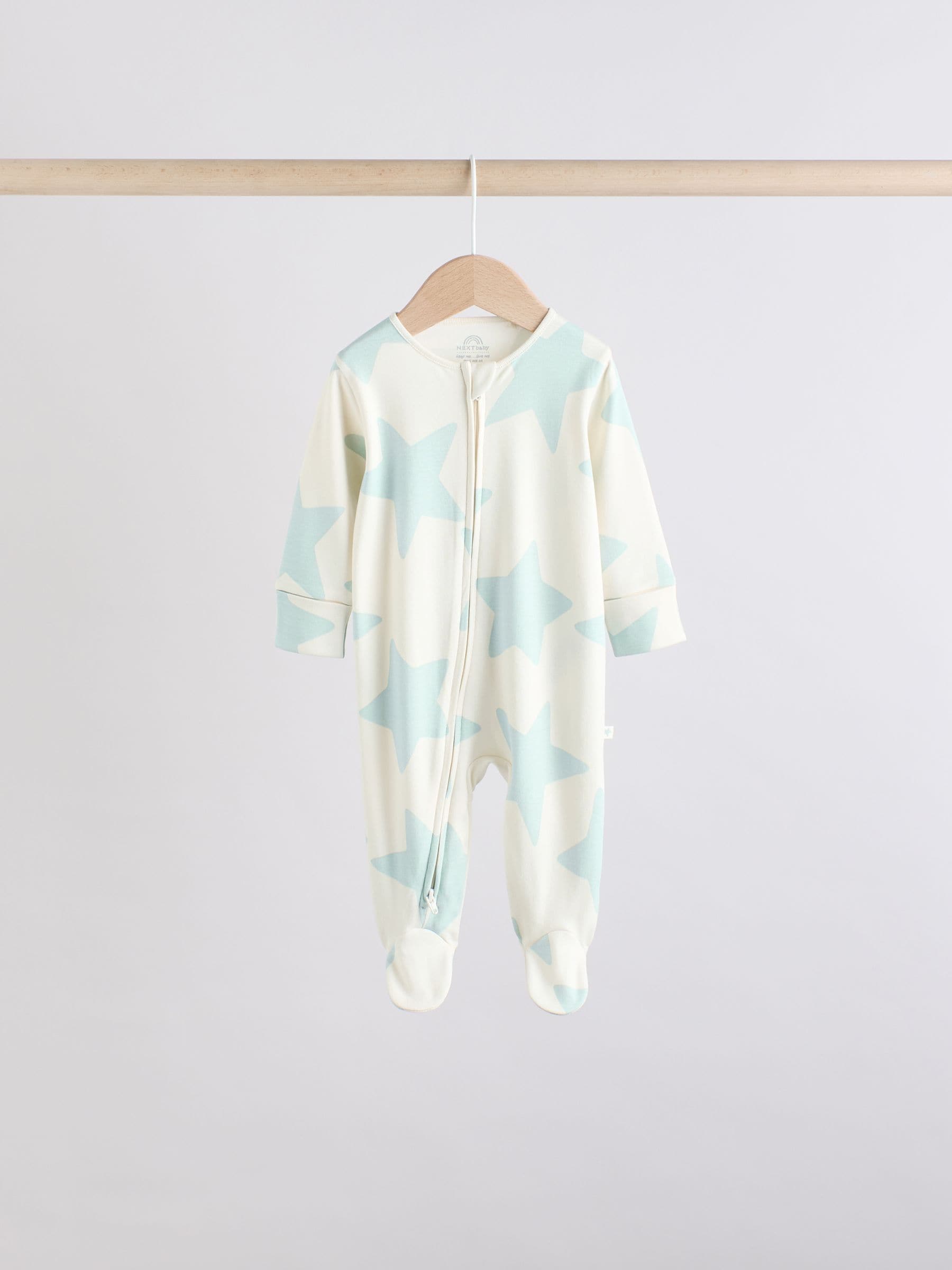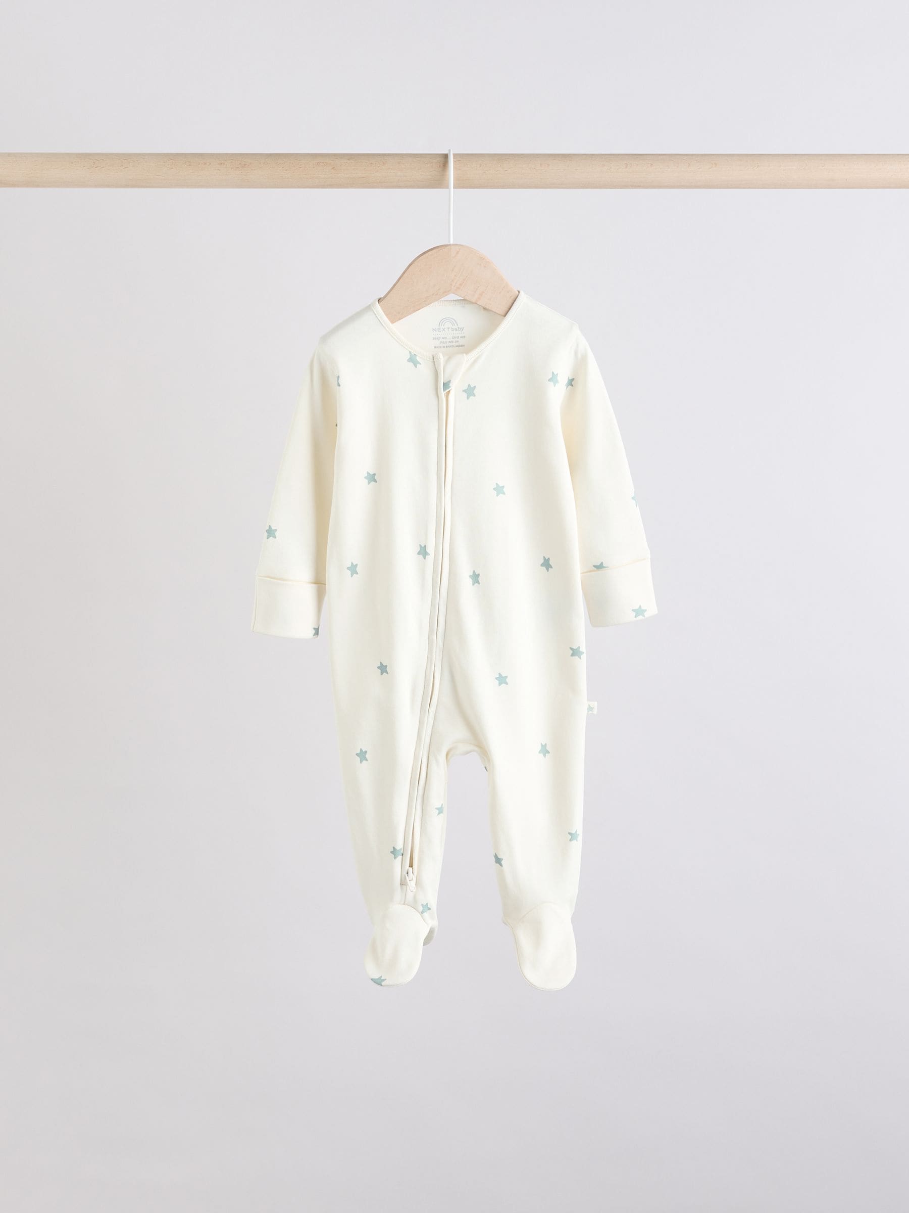 Sage Green 100% Cotton Two Way Zip Baby Sleepsuits 5 Pack (0mths-2yrs)