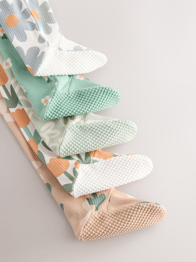 Wrap your baby in comfort with this 5-pack of sage green floral sleepsuits, crafted from premium soft cotton that's gentle on delicate skin. Each suit features convenient popper front fastening for quick changes, charming floral print designs, and thoughtful details like turn-back scratch mitts and inner lined feet. From 9-12 months, anti-slip sole prints provide extra safety during crawling. Made with no harmful chemicals or dyes and nickel-free poppers, these sleepsuits grow with your child from newborn through 2 years. Machine washable for easy care.