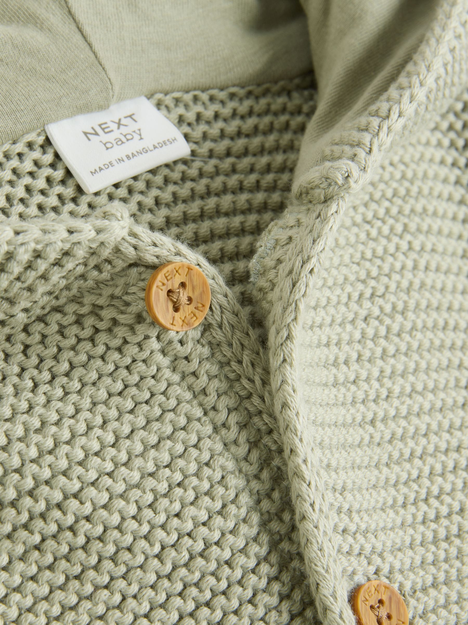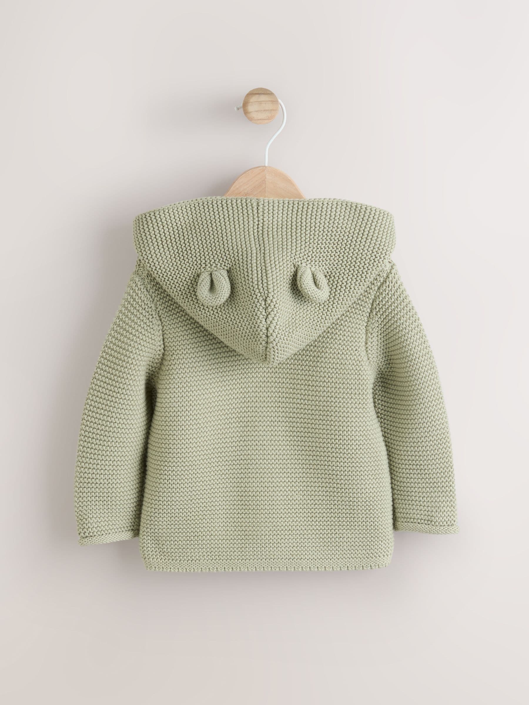 Comfy, cosy and incredibly cute, this pure-cotton knitted cardigan has 3D ear detailing to the hood, a button-up fastening and dual patch pockets, finished with a textured feel. 100% cotton Regular fit Knitted design 3D ear detail Patch pockets Machine washable. Main 100% Organic cotton. Lining 100% Organic cotton. Country of Origin: Bangladesh Warning: Keep away from fire and flames.