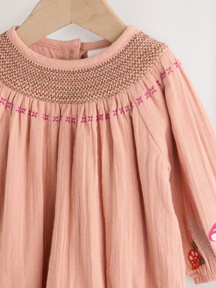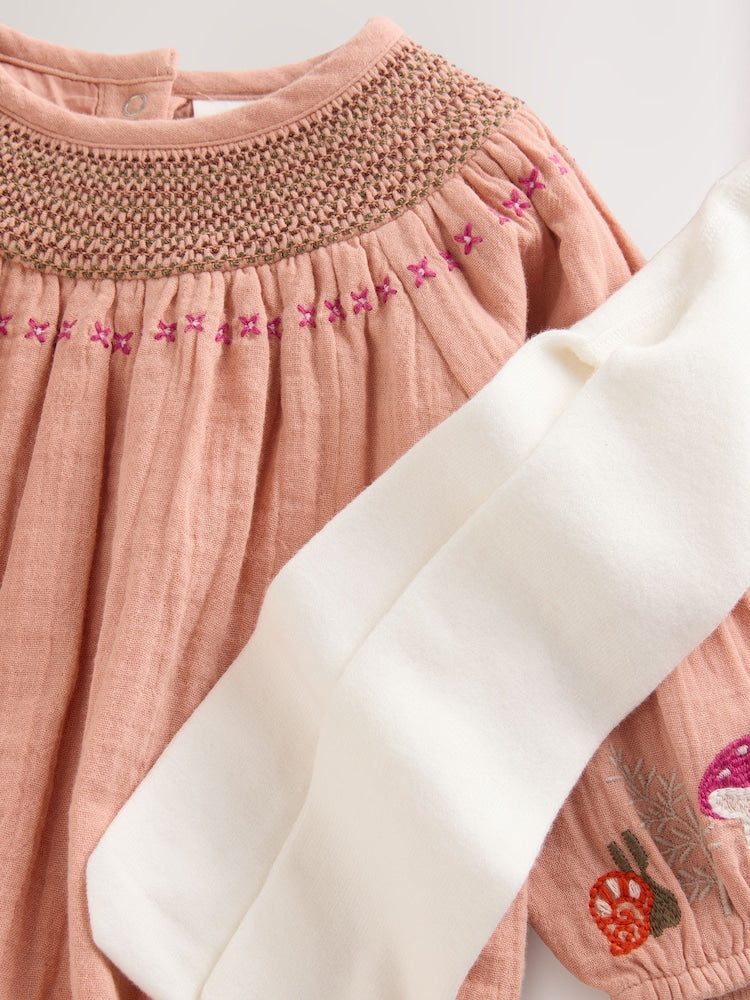 Tan Brown Embroidered Baby Bloomer Rompers Set 2 Piece with Tights (0mths-3yrs)