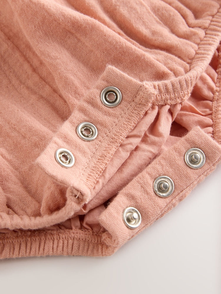 This baby romper with delicate lace trim, comes in a matching pair with tights for a complete and cosy outfit. The practical popper opening ensures fuss-free changes. Perfect for playtime and comfortable daytime adventures.