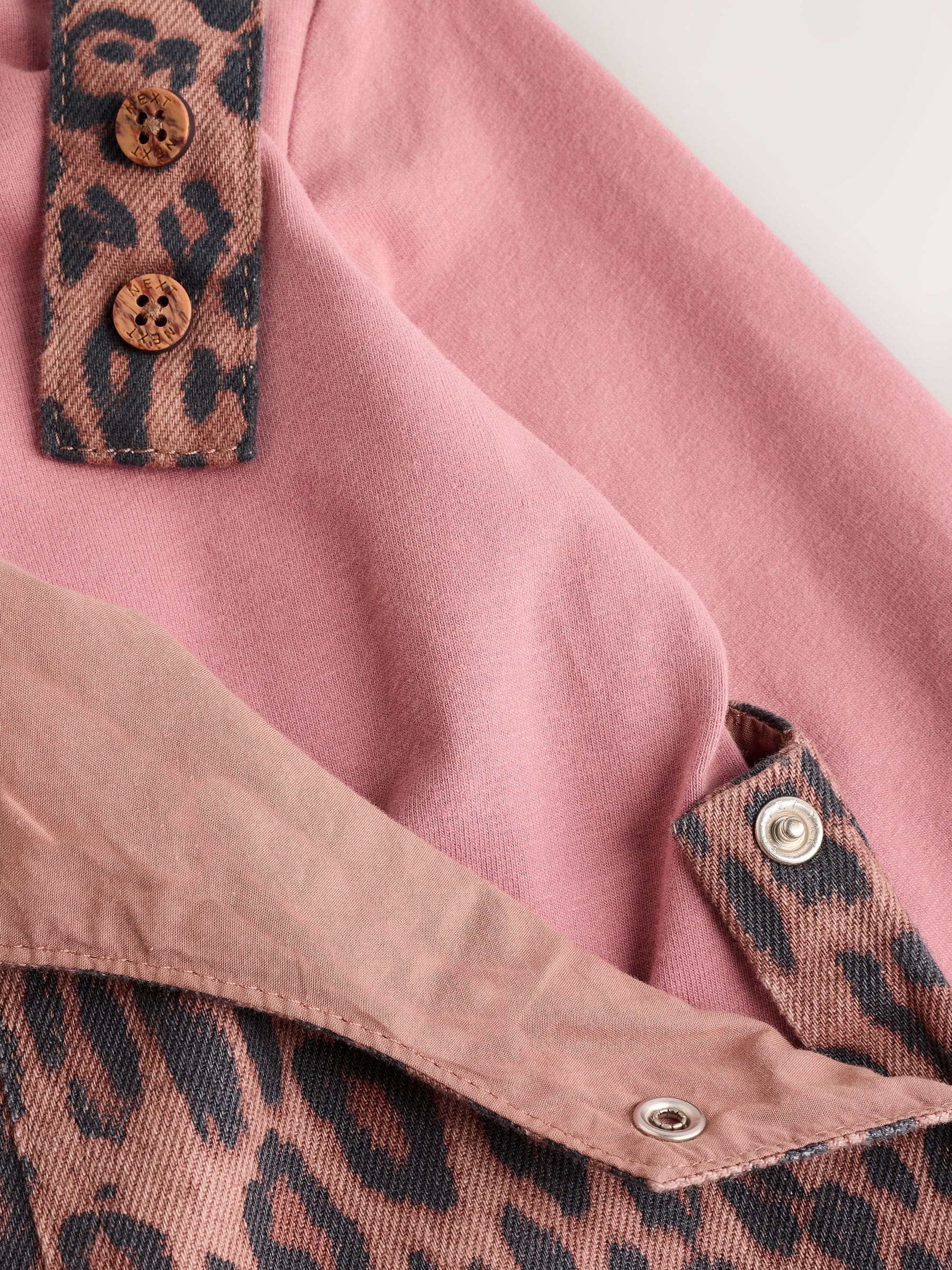 This adorable 2-piece set is the perfect layered look, featuring a ribbed long sleeve sweat top made from pure cotton, alongside leopard print cotton denim dungarees with button-through straps. 2-piece set 100% cotton Long sleeve sweatshirt Ribbed detailing Denim dungarees Machine washable. Bodysuit 92% Cotton, 8% Elastane. Dungaree Main 100% Cotton. Lining 100% Cotton. Country of Origin: Bangladesh Warning: Keep away from fire and flames.
