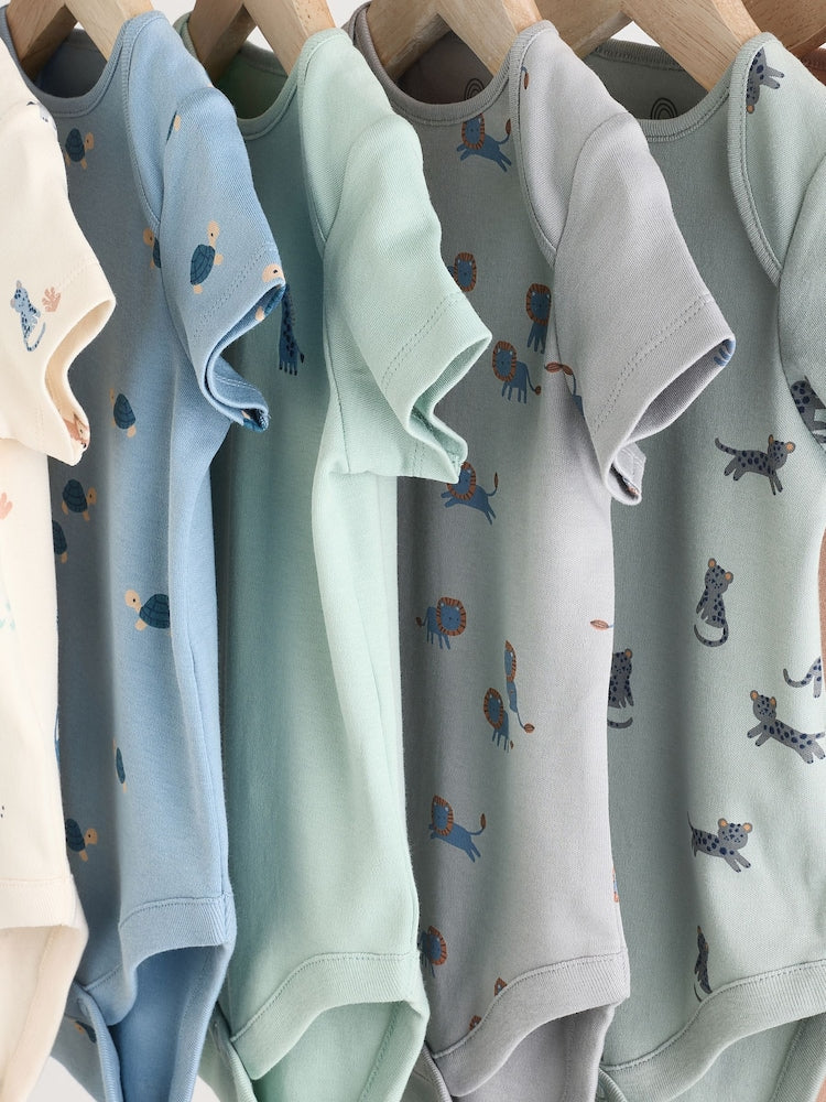 Keep them well stocked with a bodysuit for every day of the week, with this 7-pack bodysuit set featuring a pure cotton construction, a selection of adorable animal mini-prints, an envelope neck opening and a popper bottom fastening for easy changing.
