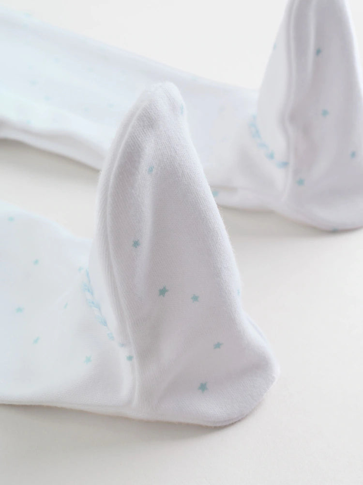 White Baby Sleepsuits 3 Pack (0-2yrs) Crafted from 100% cotton, this three-piece sleepsuit collection delivers comfort and practicality for infants and toddlers. Each suit features protective turn-back scratch mitts to prevent accidental marks, while inner-lined feet and anti-slip soles ensure secure footing during playtime and sleep. The convenient popper back fastening allows for quick, fuss-free dressing and diaper changes. Soft, breathable fabric keeps little ones cosy throughout the day and night, making this essential wardrobe staple perfect for growing babies from newborn to 2 years old.