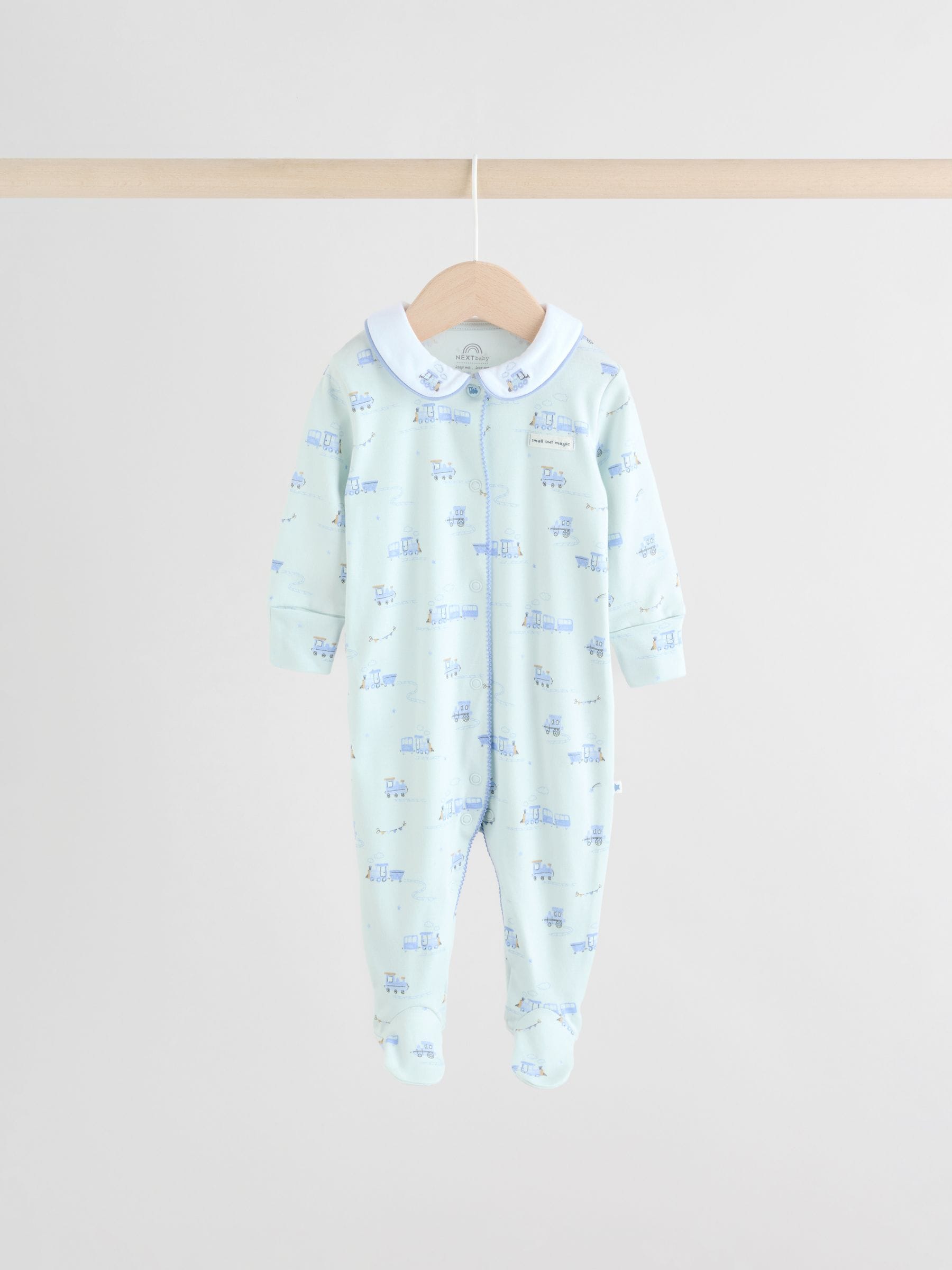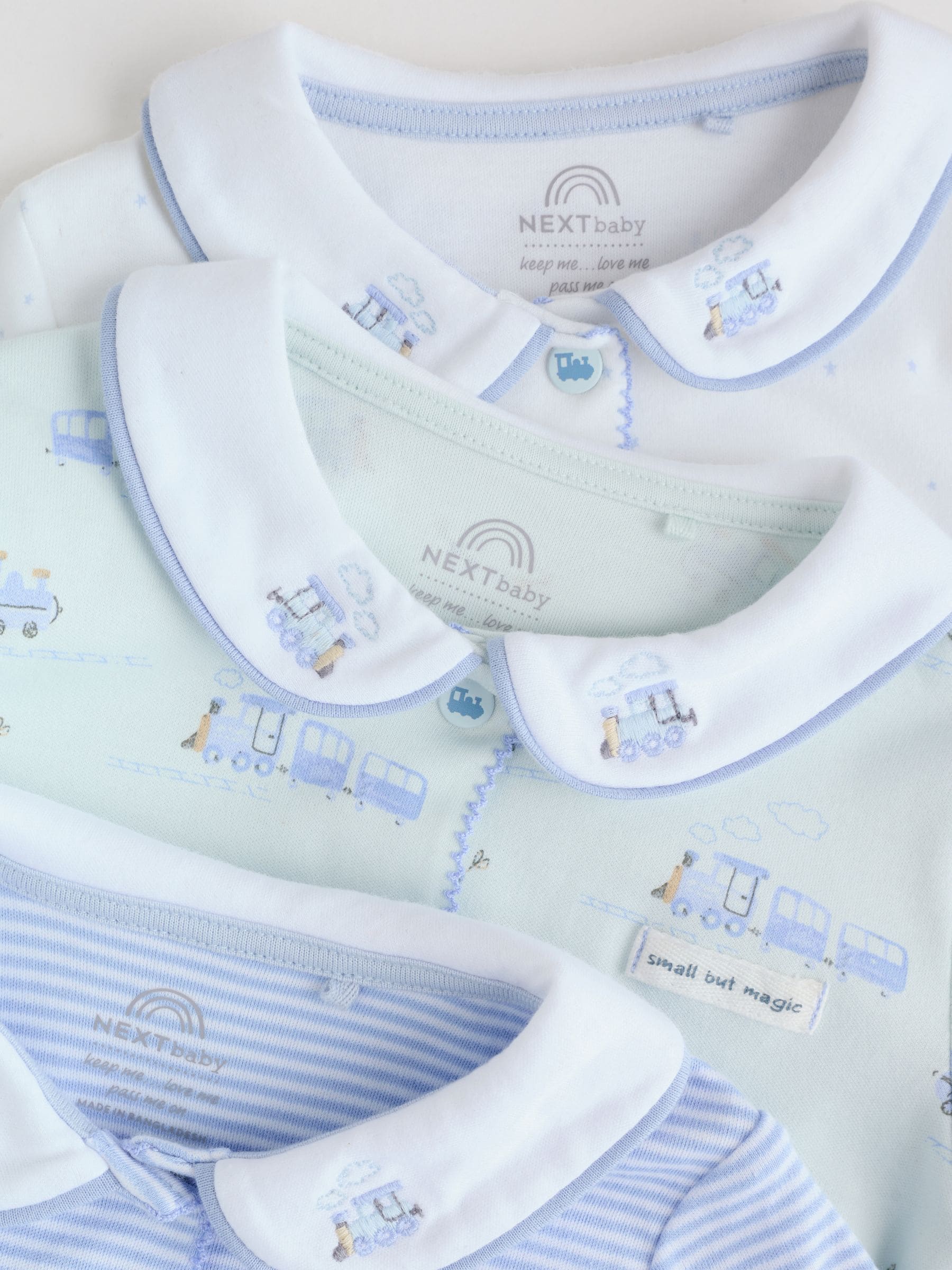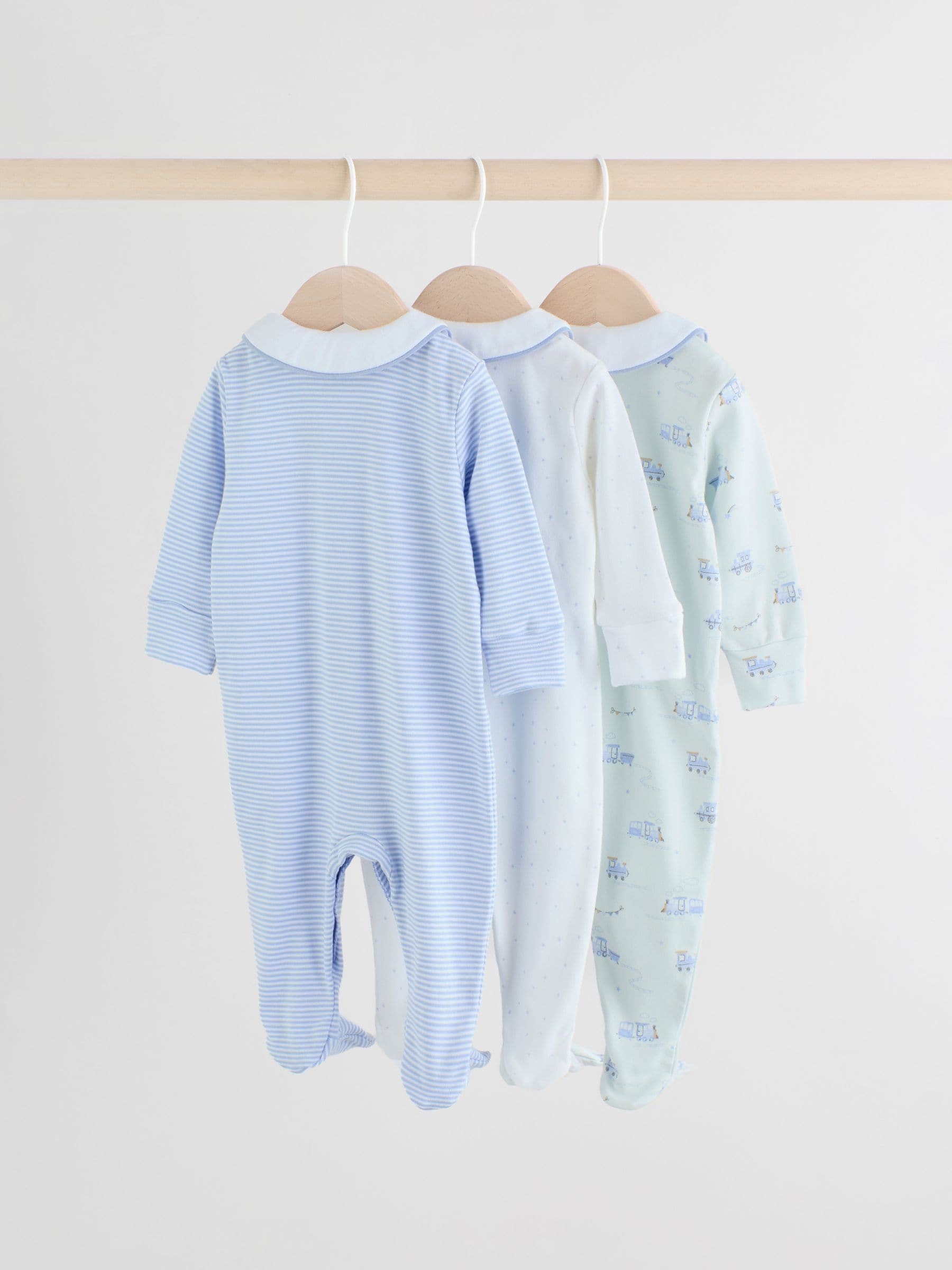 White/Blue Baby Embroidered Sleepsuits 3 Pack