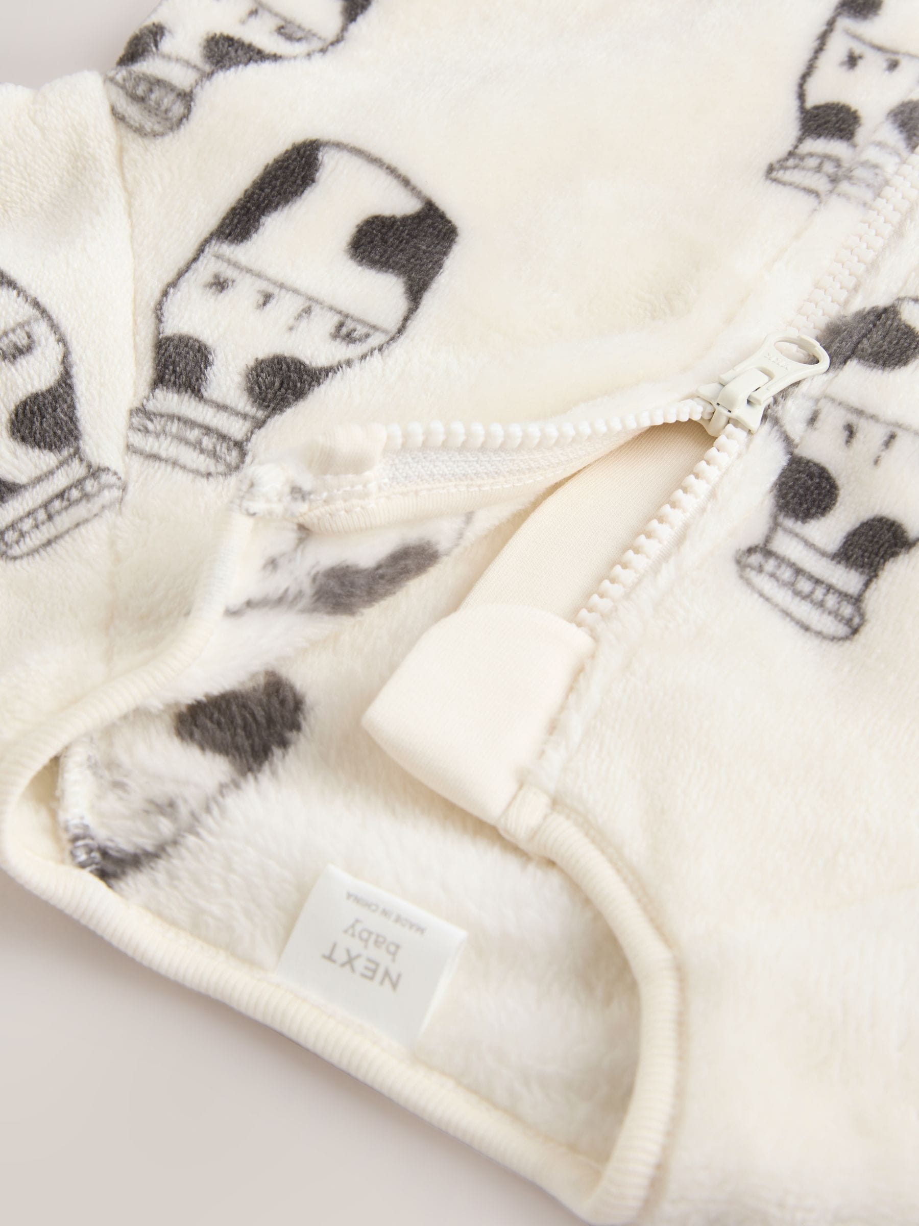 Designed for ultimate comfort, these soft fleece sleepsuits are a cosy choice for newborns. The zip front fastening ensures easy dressing, while the attached feet keep tiny toes warm, perfect for peaceful sleep. Soft fleece material Zip front fastening Attached feet Machine washable. 100% Recycled polyester. Country of Origin: China Warning: Keep away from fire and flames.