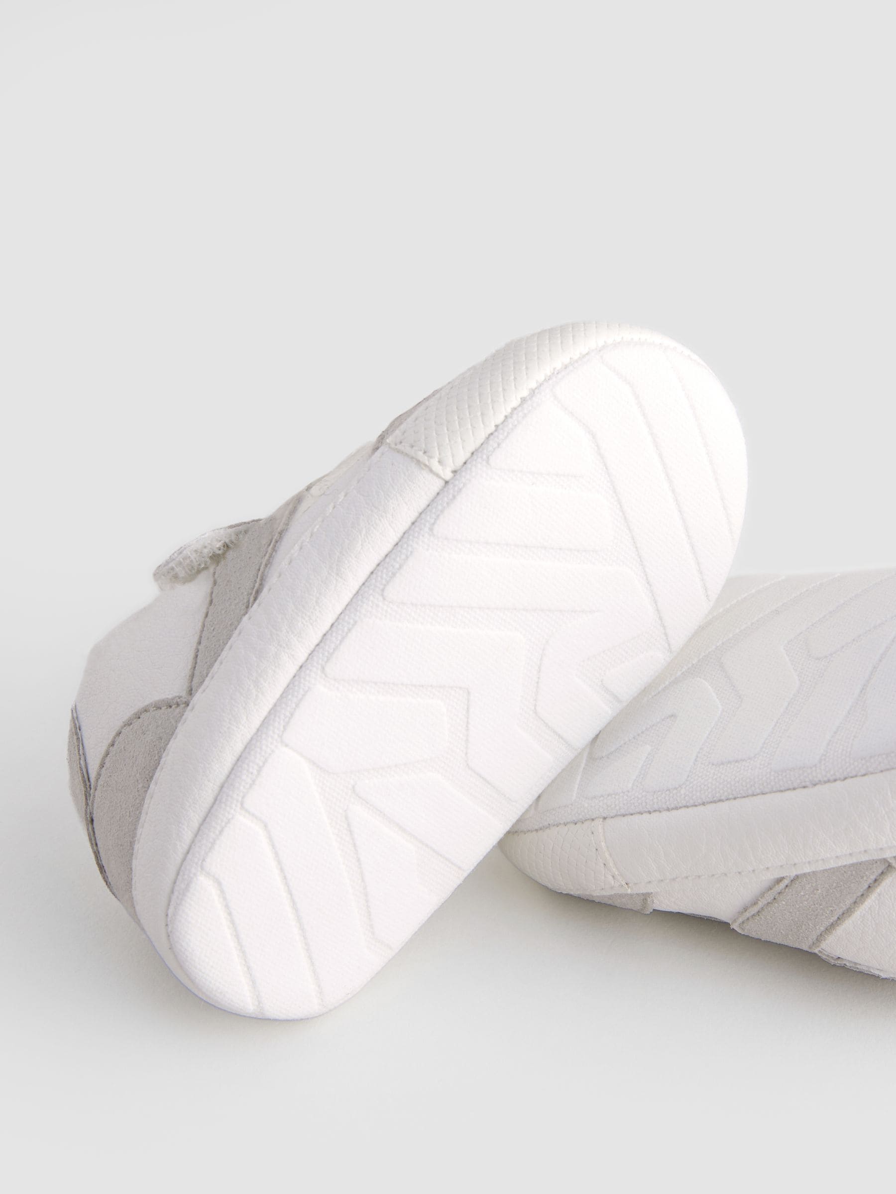 These trendy white and grey baby trainers are sure to keep your little one looking stylish, featuring a sporty and modern design with a faux leather upper, elasticated laces and a touch-fastened strap for easy wear, finished with a chevron design and a heel tab. Faux leather upper Elasticated laces Touch-fastened strap Chevron design Heel tab Upper - Other Materials, Textile, Lining & Sock - Textile, Sole - Textile, Other Materials. Country of Origin: China