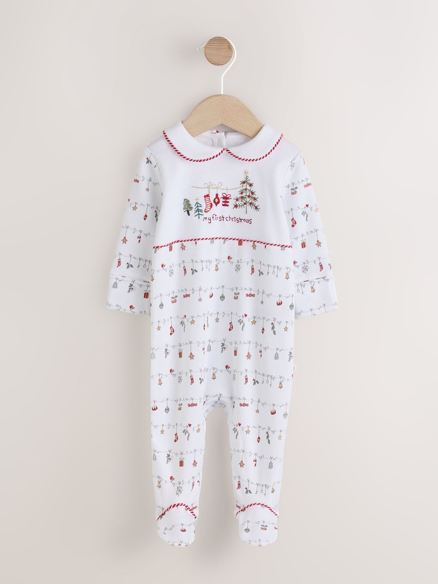 White My First Baby Christmas Sleepsuit (0-18mths)