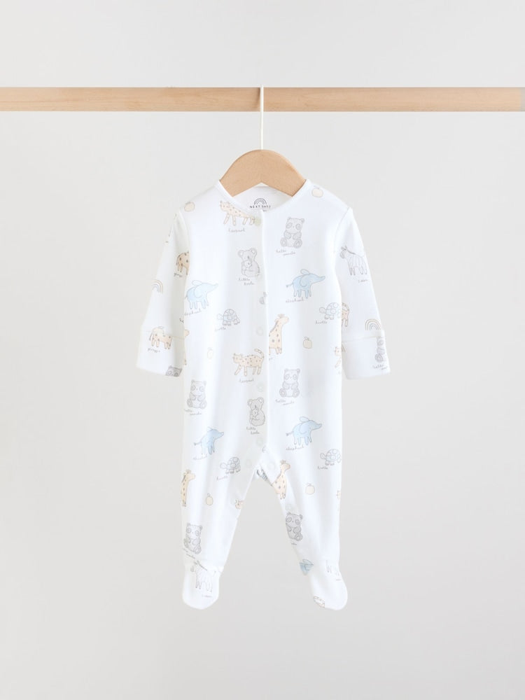 White Safari Baby Sleepsuits 3 Pack (0-2yrs)